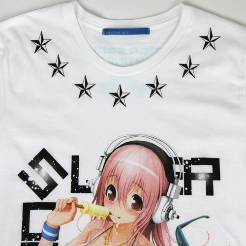 大人気キャラクター【すーぱーそに子】とのコラボ第一弾! 前代未聞の衝撃的コラボはTシャツをオリジナル柄でデザインしました。秋葉原を中心に人気のすーぱーそに子と渋谷をメインに人気のLIVERTINE AGEが表現する化学反応は他では絶対に手に入らないアイテムで激レア必須のプレミアムアイテムです。萌えカルチャーやかわいい絵柄をLIVERTINE AGEによりカッコ良くし【今】っぽく仕上げています。超有名ストリートブランドを手掛ける国内のプリント工場の洗練された技術によりすーぱーそに子の魅力を余すことなく再現していたり、多種多彩なプリント技法を使用し今にもそに子ちゃんが飛び出してるようなデザインに仕上がっています。 type ICE CREAMではビキニの水着姿でアイスクリームを食べているちょっぴりドキドキするデザインになっています。 夏らしいさ溢れるかわいいデザインが注目のTシャツです 完全受注生産で数量限定の激レアアイテムです LIVERTINE AGEのエンターテイメント性に富んだドキドキするような最新アイテムはこの夏ファッション業界を驚かせる話題のアイテムになっています。 サイズもXS~XLまでの5サイズを展開していますので自分にピッタリなサイズがきっと見つかる!XSは女性の方も着れるサイズのュmにセックスサイズになっております