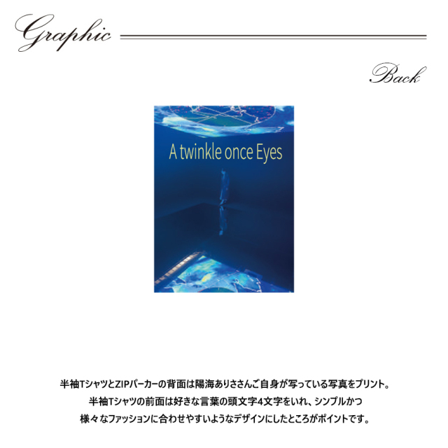 | 商品Data | 陽海ありささんとのコラボ企画! 今回のコラボはZIPパーカーと半袖Tシャツをリリース 【デザイン】 半袖TシャツとZIPパーカーの背面は陽海ありささんご自身が写っている写真をプリント。 半袖Tシャツの前面は好きな言葉の頭文字4文字をいれ、シンプルかつ 様々なファッションに合わせやすいようなデザインにしたところがポイントです。 お使い頂けるシーズンを増やせるよう 程よい厚みとなっており、 春や秋にはメインアイテムとして 冬にはアウターのインナーアイテムとしてお使い頂けます。 ここでしか手に入らない受注期間限定アイテムです!是非お買い求めください!!! ※商品の発送予定時期は 【9月上旬頃~10月下旬頃順次発送予定】となります。 ※受注生産の為、発送予定時期が前後する場合がございます。 ※商品代金が10万円以上にて代引き決済を利用してのご注文につきましては、 トラブル防止のため、決済方法をクレジットカード決済もしくはコンビニ決済に変更 させていただく場合がございます。変更前にお電話、メールにてご連絡をさせていただきます。※ ※商品によっては撮影時にサンプルを使用しているため若干仕様が異なる場合がございます。 また、サイズ・カラーによっては仕様が異なる場合もございます。 ※手作業で縫製をしているため縫製の仕様により、 個体差が生じてしまいますので、1~2cm程度の誤差は予めご了承くださいませ。 ※洗濯機を使用した場合、お届け時のサイズより多少縮む場合がございます。 洗濯機を使用する場合は裏返してネットに入れることを推奨しております。 また、タンブラー乾燥機を使用しますとプリントが剥がれる恐れがありますので 避けていただきますようお願いいたします。 また、洗濯時の液温は40度以下とし、 塩素系および酸素系漂白剤の使用は避けていただきますようお願いいたします。 アイロンにつきましてもプリント及び刺繍部分は避け、 生地部分にアイロンをかける場合にはあて布をして110度(低温)にてお願いいたします。 ※また、受注生産とさせていただいておりますが、 各色・サイズ毎に生産数に限りがございます為、 生産数の上限に達しました場合在庫切れとなる場合がございます。 予めご了承頂けますようお願い致します。 |