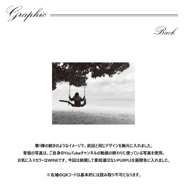 | 商品Data | 遠藤瑠香さんとのコラボ企画第2弾! 今回のコラボはトレーナーをリリース。 【デザイン】 第1弾の続きのようなイメージで、前回と同じデザインを胸元に入れました。 背面の写真は、ご自身のYouTubeチャンネルの動画の終わりに使っている写真を使用。 お気に入りカラーはWINEです。今回は挑戦して普段選ばないPURPLEを展開色に入れました。 ※右袖のQRコードは基本的には読み取り不可となります。 お使い頂けるシーズンを増やせるよう 程よい厚みとなっており、 春や秋にはメインアイテムとして 冬にはアウターのインナーアイテムとしてお使い頂けます。 ここでしか手に入らない受注期間限定アイテムです!是非お買い求めください!!! ※商品の発送予定時期は 【12月下旬頃~2月上旬頃順次発送予定】となります。 ※受注生産の為、発送予定時期が前後する場合がございます。 ※商品代金が10万円以上にて代引き決済を利用してのご注文につきましては、 トラブル防止のため、決済方法をクレジットカード決済もしくはコンビニ決済に変更 させていただく場合がございます。変更前にお電話、メールにてご連絡をさせていただきます。※ ※商品によっては撮影時にサンプルを使用しているため若干仕様が異なる場合がございます。 また、サイズ・カラーによっては仕様が異なる場合もございます。 ※手作業で縫製をしているため縫製の仕様により、 個体差が生じてしまいますので、1~2cm程度の誤差は予めご了承くださいませ。 ※洗濯機を使用した場合、お届け時のサイズより多少縮む場合がございます。 洗濯機を使用する場合は裏返してネットに入れることを推奨しております。 また、タンブラー乾燥機を使用しますとプリントが剥がれる恐れがありますので 避けていただきますようお願いいたします。 また、洗濯時の液温は40度以下とし、 塩素系および酸素系漂白剤の使用は避けていただきますようお願いいたします。 アイロンにつきましてもプリント及び刺繍部分は避け、 生地部分にアイロンをかける場合にはあて布をして110度(低温)にてお願いいたします。 ※また、受注生産とさせていただいておりますが、 各色・サイズ毎に生産数に限りがございます為、 生産数の上限に達しました場合在庫切れとなる場合がございます。 予めご了承頂けますようお願い致します。 |