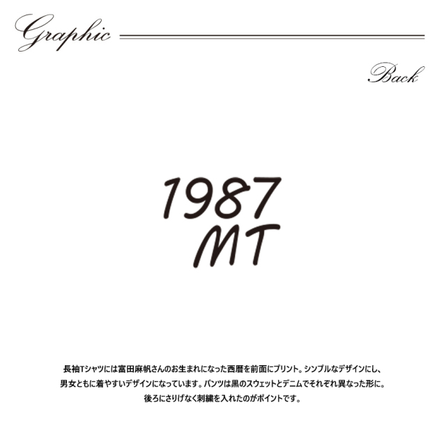 | 商品Data | 富田麻帆さんとのコラボ企画第5弾! 今回のコラボは長袖Tシャツと2タイプのスウェットパンツをリリース。 【デザイン】 長袖Tシャツには富田麻帆さんのお生まれになった西暦を前面にプリント。シンプルなデザインにし、 男女ともに着やすいデザインになっています。パンツは黒のスウェットとデニムでそれぞれ異なった形に。 後ろにさりげなく刺繍を入れたのがポイントです。 【ポイント】 ・オリジナルロゴを国内で刺繍をしています。 ・ライトタッチのパンツは、履き心地の良いアイテムです。 お使い頂けるシーズンを増やせるよう 程よい厚みとなっており、 春や秋にはメインアイテムとして 冬にはアウターのインナーアイテムとしてお使い頂けます。 ここでしか手に入らない受注期間限定アイテムです!是非お買い求めください!!! ※商品の発送予定時期は 【4月上旬頃~4月中旬頃順次発送予定】となります。 ※受注生産の為、発送予定時期が前後する場合がございます。 ※商品代金が10万円以上にて代引き決済を利用してのご注文につきましては、 トラブル防止のため、決済方法をクレジットカード決済もしくはコンビニ決済に変更 させていただく場合がございます。変更前にお電話、メールにてご連絡をさせていただきます。※ ※商品によっては撮影時にサンプルを使用しているため若干仕様が異なる場合がございます。 また、サイズ・カラーによっては仕様が異なる場合もございます。 ※手作業で縫製をしているため縫製の仕様により、 個体差が生じてしまいますので、1~2cm程度の誤差は予めご了承くださいませ。 ※洗濯機を使用した場合、お届け時のサイズより多少縮む場合がございます。 洗濯機を使用する場合は裏返してネットに入れることを推奨しております。 また、タンブラー乾燥機を使用しますとプリントが剥がれる恐れがありますので 避けていただきますようお願いいたします。 また、洗濯時の液温は40度以下とし、 塩素系および酸素系漂白剤の使用は避けていただきますようお願いいたします。 アイロンにつきましてもプリント及び刺繍部分は避け、 生地部分にアイロンをかける場合にはあて布をして110度(低温)にてお願いいたします。 ※また、受注生産とさせていただいておりますが、 各色・サイズ毎に生産数に限りがございます為、 生産数の上限に達しました場合在庫切れとなる場合がございます。 予めご了承頂けますようお願い致します。 |