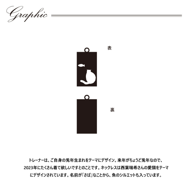 | 商品Data | 西葉瑞希さんとのコラボ企画第4弾! 今回のコラボはトレーナーとネックレスをリリース。 【デザイン】 トレーナーは、ご自身の兎年生まれをテーマにデザイン。 来年がちょうど兎年なので、2023年にたくさん着て欲しいですとのことです。 ネックレスは西葉瑞希さんの愛猫をテーマにデザインされています。 名前が「さば」なことから、魚のシルエットも入っています。 メイドインジャパンのネックレスは原型から作成したオリジナルアイテムです。 メッキ加工:国内加工 原型作成:国内 ※アレルギーの反応等がその時の体調や個人差により出る場合がございますので、 金属製アクセサリーを初めてご使用の場合は必ず「パッチテスト」をしてご使用ください。※ 【パッチテストとは】 金属アレルギーの場合、特殊なテープに24種類の金属試薬をつけてアレルギーの有無を調べる検査です。 皮膚科などで相談をすれば身近にできる検査です。 いくつか検査中に注意する点がありますのでテストを受ける病院で検査について相談してください。 ここでしか手に入らない受注期間限定アイテムです!是非お買い求めください!!! ※現時点での商品の発送予定時期は【11月上旬頃~12月下旬頃順次発送予定】 を予定しております。 また、発送予定時期のご連絡やご入金の確認はメールにて行わせていただきますが、 ドメイン指定やメールアドレスの入力間違いなどでメールが届かないなどのお問い合わせが増えております。 受信設定をされている方は下記のアドレスの受信設定をお願いします。 shopmaster@livertine.ko.shopserve.jp ※受注生産の為、発送予定時期が前後する場合がございます。 また、受注生産とさせていただいておりますが、 各色・サイズ毎に生産数を設けさせて頂いております為、 生産数の上限に達しました場合在庫切れとなる場合がございます。 ※※商品画像は照明などの影響により実際の色と異なる場合がございます ※加工の特性上、仕上がり寸法及び色のニュアンスが多少異なることがあります。 ※商品代金が10万円以上にて代引き決済を利用してのご注文につきましては、 トラブル防止のため、決済方法をクレジットカード決済もしくはコンビニ決済に変更 させていただく場合がございます。変更前にお電話、メールにてご連絡をさせていただきます。※ |