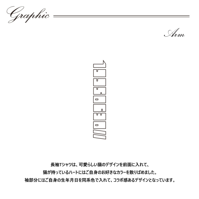 | 商品Data | 春日望さんとのコラボ企画第2弾 今回のコラボは半袖Tシャツと長袖Tシャツをリリース。 【デザイン】 長袖Tシャツは、可愛らしい猫のデザインを前面に入れて、 猫が持っているハートにはご自身のお好きなカラーを散りばめました。 袖部分にはご自身の生年月日を同系色で入れて、コラボ感あるデザインとなっています。 ここでしか手に入らない受注期間限定アイテムです!是非お買い求めください!!! ※商品の発送予定時期は 【8月下旬頃~9月中旬頃順次発送予定】となります。 ※受注生産の為、発送予定時期が前後する場合がございます。 ※高額注文の場合には ご注文後にお電話にてご連絡をさせていただく場合がございます。 お電話にてご連絡が取れない場合にはメールにてご連絡させていただき、 ご連絡日より3日以内にご返信をいただけない場合には不正注文の可能性があると判断し トラブル防止のためご注文をキャンセルとさせていただきます。 ※商品によっては撮影時にサンプルを使用しているため若干仕様が異なる場合がございます。 また、サイズ・カラーによっては仕様が異なる場合もございます。 ※手作業で縫製をしているため縫製の仕様により、 個体差が生じてしまいますので、1~2cm程度の誤差は予めご了承くださいませ。 ※洗濯機を使用した場合、お届け時のサイズより多少縮む場合がございます。 洗濯機を使用する場合は裏返してネットに入れることを推奨しております。 また、タンブラー乾燥機を使用しますとプリントが剥がれる恐れがありますので 避けていただきますようお願いいたします。 また、洗濯時の液温は40度以下とし、 塩素系および酸素系漂白剤の使用は避けていただきますようお願いいたします。 アイロンにつきましてもプリント及び刺繍部分は避け、 生地部分にアイロンをかける場合にはあて布をして110度(低温)にてお願いいたします。 ※また、受注生産とさせていただいておりますが、 各色・サイズ毎に生産数に限りがございます為、 生産数の上限に達しました場合在庫切れとなる場合がございます。 |