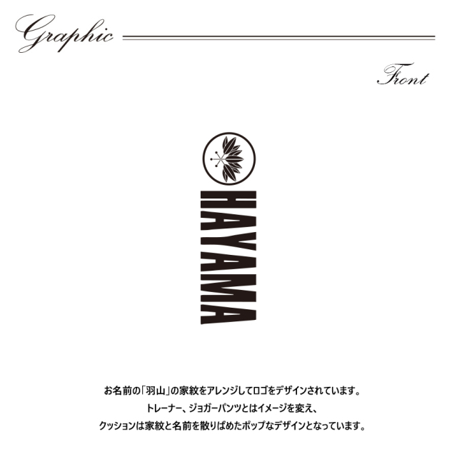 | 商品Data | 羽山みずきさんとのコラボ企画第2弾! 今回のコラボはトレーナー、ジョガーパンツ、クッションをリリース。 【デザイン】 お名前の「羽山」の家紋をアレンジしてロゴをデザインされています。 トレーナー、ジョガーパンツとはイメージを変え、 クッションは家紋と名前を散りばめたポップなデザインとなっています。 ここでしか手に入らない受注期間限定アイテムです!是非お買い求めください!!! ※商品の発送予定時期は 【2月下旬頃~3月中旬頃順次発送予定】となります。 ※受注生産の為、発送予定時期が前後する場合がございます。 ※高額注文の場合には ご注文後にお電話にてご連絡をさせていただく場合がございます。 お電話にてご連絡が取れない場合にはメールにてご連絡させていただき、 ご連絡日より3日以内にご返信をいただけない場合には不正注文の可能性があると判断し トラブル防止のためご注文をキャンセルとさせていただきます。 ※商品によっては撮影時にサンプルを使用しているため若干仕様が異なる場合がございます。 また、サイズ・カラーによっては仕様が異なる場合もございます。 ※手作業で縫製をしているため縫製の仕様により、 個体差が生じてしまいますので、1~2cm程度の誤差は予めご了承くださいませ。 ※洗濯機を使用した場合、お届け時のサイズより多少縮む場合がございます。 洗濯機を使用する場合は裏返してネットに入れることを推奨しております。 また、タンブラー乾燥機を使用しますとプリントが剥がれる恐れがありますので 避けていただきますようお願いいたします。 また、洗濯時の液温は40度以下とし、 塩素系および酸素系漂白剤の使用は避けていただきますようお願いいたします。 アイロンにつきましてもプリント及び刺繍部分は避け、 生地部分にアイロンをかける場合にはあて布をして110度(低温)にてお願いいたします。 ※また、受注生産とさせていただいておりますが、 各色・サイズ毎に生産数に限りがございます為、 生産数の上限に達しました場合在庫切れとなる場合がございます。 |