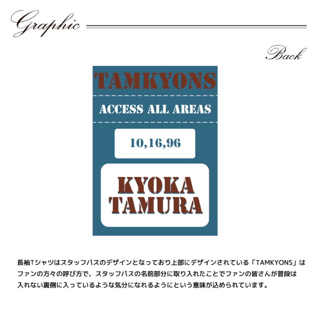 | 商品Data | 田村響華さんとのコラボ企画第5弾! 今回のコラボはポロシャツ、長袖シャツ、クッションをリリース。 【デザイン】 スタッフパスのデザインとなっており 上部にデザインされている「TAMKYONS」はファンの方々の呼び方で、 スタッフパスの名前部分に取り入れたことでファンの皆さんが普段は入れない 裏側に入っているような気分になれるようにという意味が込められています。 ここでしか手に入らない受注期間限定アイテムです!是非お買い求めください!!! ※商品の発送予定時期は【6月下旬頃~7月上旬頃順次発送予定】となります。 ※受注生産の為、発送予定時期が前後する場合がございます。 ※高額注文の場合には ご注文後にお電話にてご連絡をさせていただく場合がございます。 お電話にてご連絡が取れない場合にはメールにてご連絡させていただき、 ご連絡日より3日以内にご返信をいただけない場合には不正注文の可能性があると判断し トラブル防止のためご注文をキャンセルとさせていただきます。 ※商品によっては撮影時にサンプルを使用しているため若干仕様が異なる場合がございます。 また、サイズ・カラーによっては仕様が異なる場合もございます。 ※手作業で縫製をしているため縫製の仕様により、 個体差が生じてしまいますので、1~2cm程度の誤差は予めご了承くださいませ。 ※洗濯機を使用した場合、お届け時のサイズより多少縮む場合がございます。 洗濯機を使用する場合は裏返してネットに入れることを推奨しております。 また、タンブラー乾燥機を使用しますとプリントが剥がれる恐れがありますので 避けていただきますようお願いいたします。 また、洗濯時の液温は40度以下とし、 塩素系および酸素系漂白剤の使用は避けていただきますようお願いいたします。 アイロンにつきましてもプリント及び刺繍部分は避け、 生地部分にアイロンをかける場合にはあて布をして110度(低温)にてお願いいたします。 ※また、受注生産とさせていただいておりますが、 各色・サイズ毎に生産数に限りがございます為、 生産数の上限に達しました場合在庫切れとなる場合がございます。 |