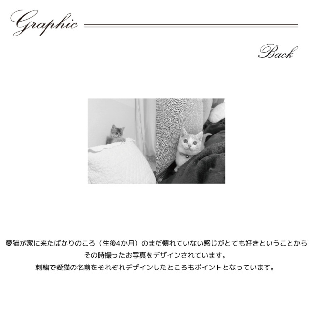 | 商品Data | 南あすかさんとのコラボ企画! 今回のコラボは半袖Tシャツ、ZIPパーカー、キャップをリリース。 【デザイン】 愛猫が家に来たばかりのころ(生後4か月)のまだ慣れていない感じが とても好きということからその時撮ったお写真をデザインされています。 刺繍で愛猫の名前をそれぞれデザインしたところもポイントとなっています。 ここでしか手に入らない受注期間限定アイテムです!是非お買い求めください!!! ※商品の発送予定時期は【7月下旬頃~8月上旬頃順次発送予定】となります。 ※受注生産の為、発送予定時期が前後する場合がございます。 ※高額注文の場合には ご注文後にお電話にてご連絡をさせていただく場合がございます。 お電話にてご連絡が取れない場合にはメールにてご連絡させていただき、 ご連絡日より3日以内にご返信をいただけない場合には不正注文の可能性があると判断し トラブル防止のためご注文をキャンセルとさせていただきます。 ※商品によっては撮影時にサンプルを使用しているため若干仕様が異なる場合がございます。 また、サイズ・カラーによっては仕様が異なる場合もございます。 ※手作業で縫製をしているため縫製の仕様により、 個体差が生じてしまいますので、1~2cm程度の誤差は予めご了承くださいませ。 ※洗濯機を使用した場合、お届け時のサイズより多少縮む場合がございます。 洗濯機を使用する場合は裏返してネットに入れることを推奨しております。 また、タンブラー乾燥機を使用しますとプリントが剥がれる恐れがありますので 避けていただきますようお願いいたします。 また、洗濯時の液温は40度以下とし、 塩素系および酸素系漂白剤の使用は避けていただきますようお願いいたします。 アイロンにつきましてもプリント及び刺繍部分は避け、 生地部分にアイロンをかける場合にはあて布をして110度(低温)にてお願いいたします。 ※また、受注生産とさせていただいておりますが、 各色・サイズ毎に生産数に限りがございます為、 生産数の上限に達しました場合在庫切れとなる場合がございます。 |