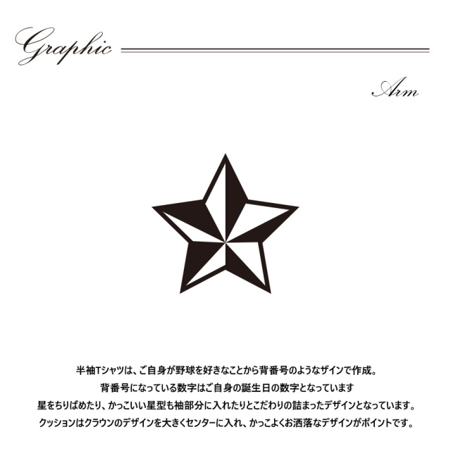 | 商品Data | 逢瀬アキラさんとのコラボ企画第3弾! 今回のコラボは半袖Tシャツ、クッションをリリース。 【デザイン】 半袖Tシャツは、ご自身が野球を好きなことから背番号のようなザインで作成。 背番号になっている数字はご自身の誕生日の数字となっています。 星をちりばめたり、かっこいい星型も袖部分に入れたりとこだわりの詰まったデザインとなっています。 クッションはクラウンのデザインを大きくセンターに入れ、かっこよくお洒落なデザインがポイントです。 ここでしか手に入らない受注期間限定アイテムです!是非お買い求めください!!! ※商品の発送予定時期は【9月下旬頃~10月上旬頃順次発送予定】となります。 ※受注生産の為、発送予定時期が前後する場合がございます。 ※高額注文の場合には ご注文後にお電話にてご連絡をさせていただく場合がございます。 お電話にてご連絡が取れない場合にはメールにてご連絡させていただき、 ご連絡日より3日以内にご返信をいただけない場合には不正注文の可能性があると判断し トラブル防止のためご注文をキャンセルとさせていただきます。 ※商品によっては撮影時にサンプルを使用しているため若干仕様が異なる場合がございます。 また、サイズ・カラーによっては仕様が異なる場合もございます。 ※手作業で縫製をしているため縫製の仕様により、 個体差が生じてしまいますので、1~2cm程度の誤差は予めご了承くださいませ。 ※洗濯機を使用した場合、お届け時のサイズより多少縮む場合がございます。 洗濯機を使用する場合は裏返してネットに入れることを推奨しております。 また、タンブラー乾燥機を使用しますとプリントが剥がれる恐れがありますので 避けていただきますようお願いいたします。 また、洗濯時の液温は40度以下とし、 塩素系および酸素系漂白剤の使用は避けていただきますようお願いいたします。 アイロンにつきましてもプリント及び刺繍部分は避け、 生地部分にアイロンをかける場合にはあて布をして110度(低温)にてお願いいたします。 ※また、受注生産とさせていただいておりますが、 各色・サイズ毎に生産数に限りがございます為、 生産数の上限に達しました場合在庫切れとなる場合がございます。 |