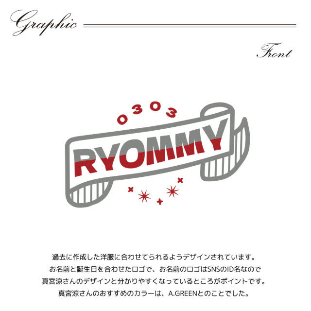 | 商品Data | 真宮涼さんとのコラボ企画第4弾! 今回のコラボはZIPパーカー、スウェットパンツ、バングルをリリース。 【デザイン】 過去に作成した洋服に合わせてられるようデザインされています。 お名前と誕生日を合わせたロゴで、お名前のロゴはSNSのID名なので 真宮涼さんのデザインと分かりやすくなっているところがポイントです。 真宮涼さんのおすすめのカラーは、A.GREENとのことでした。 ここでしか手に入らない受注期間限定アイテムです!是非お買い求めください!!! ※商品の発送予定時期は【11月上旬頃~11月中旬頃順次発送予定】となります。 ※受注生産の為、発送予定時期が前後する場合がございます。 ※BLACKのXLサイズは生産資材確保の都合上 【2月上旬〜2月中旬頃順次発送予定】となる場合がございます。 ※高額注文の場合には ご注文後にお電話にてご連絡をさせていただく場合がございます。 お電話にてご連絡が取れない場合にはメールにてご連絡させていただき、 ご連絡日より3日以内にご返信をいただけない場合には不正注文の可能性があると判断し トラブル防止のためご注文をキャンセルとさせていただきます。 ※商品によっては撮影時にサンプルを使用しているため若干仕様が異なる場合がございます。 また、サイズ・カラーによっては仕様が異なる場合もございます。 ※手作業で縫製をしているため縫製の仕様により、 個体差が生じてしまいますので、1~2cm程度の誤差は予めご了承くださいませ。 ※洗濯機を使用した場合、お届け時のサイズより多少縮む場合がございます。 洗濯機を使用する場合は裏返してネットに入れることを推奨しております。 また、タンブラー乾燥機を使用しますとプリントが剥がれる恐れがありますので 避けていただきますようお願いいたします。 また、洗濯時の液温は40度以下とし、 塩素系および酸素系漂白剤の使用は避けていただきますようお願いいたします。 アイロンにつきましてもプリント及び刺繍部分は避け、 生地部分にアイロンをかける場合にはあて布をして110度(低温)にてお願いいたします。 ※また、受注生産とさせていただいておりますが、 各色・サイズ毎に生産数に限りがございます為、 生産数の上限に達しました場合在庫切れとなる場合がございます。 |
