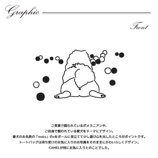 | 商品Data | 衣川里佳さんとのコラボ企画第2弾! 今回のコラボはトレーナー、ジョガーパンツ、トートバッグをリリース。 【デザイン】 ご実家で飼われているポメラニアンや、 ご自身で飼われている愛犬をテーマにデザイン。 愛犬のお名前の「moko」のoをボールに見立てて少し遊び心を出したところがポイントです。 トートバッグは待ち受けのお気に入りのお写真をそのままにかわいらしくデザイン。 CAMELが特にお気に入りとのことでした。 ※商品の発送予定時期は 【2月上旬頃~2月中旬頃順次発送予定】となります。 ※受注生産の為、発送予定時期が前後する場合がございます。 ※高額注文の場合には ご注文後にお電話にてご連絡をさせていただく場合がございます。 お電話にてご連絡が取れない場合にはメールにてご連絡させていただき、 ご連絡日より3日以内にご返信をいただけない場合には不正注文の可能性があると判断し トラブル防止のためご注文をキャンセルとさせていただきます。 ※商品によっては撮影時にサンプルを使用しているため若干仕様が異なる場合がございます。 また、サイズ・カラーによっては仕様が異なる場合もございます。 ※手作業で縫製をしているため縫製の仕様により、 個体差が生じてしまいますので、1~2cm程度の誤差は予めご了承くださいませ。 ※洗濯機を使用した場合、お届け時のサイズより多少縮む場合がございます。 洗濯機を使用する場合は裏返してネットに入れることを推奨しております。 また、タンブラー乾燥機を使用しますとプリントが剥がれる恐れがありますので 避けていただきますようお願いいたします。 また、洗濯時の液温は40度以下とし、 塩素系および酸素系漂白剤の使用は避けていただきますようお願いいたします。 アイロンにつきましてもプリント及び刺繍部分は避け、 生地部分にアイロンをかける場合にはあて布をして110度(低温)にてお願いいたします。 ※また、受注生産とさせていただいておりますが、 各色・サイズ毎に生産数に限りがございます為、 生産数の上限に達しました場合在庫切れとなる場合がございます。 |