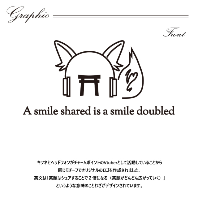 | 商品Data | 神楽ゆらさんとのコラボ企画! 今回のコラボは半袖Tシャツ、プルオーバーパーカー、トートバッグをリリース。 【デザイン】 キツネとヘッドフォンがチャームポイントのVtuberとして活動していることから 同じモチーフでオリジナルのロゴを作成されました。 英文は「笑顔はシェアすることで2倍になる(笑顔がどんどん広がっていく)」 というような意味のことわざがデザインされています。 ここでしか手に入らない受注期間限定アイテムです!是非お買い求めください!!! ※商品の発送予定時期は【4月下旬頃~5月上旬頃順次発送予定】となります。 ※受注生産の為、発送予定時期が前後する場合がございます。 ※高額注文の場合にはご注文後にお電話にてご連絡をさせていただく場合がございます。 お電話にてご連絡が取れない場合にはメールにてご連絡させていただき、 ご連絡日より3日以内にご返信をいただけない場合には不正注文の可能性があると判断し トラブル防止のためご注文をキャンセルとさせていただきます。 ※商品によっては撮影時にサンプルを使用しているため若干仕様が異なる場合がございます。 また、サイズ・カラーによっては仕様が異なる場合もございます。 ※手作業で縫製をしているため縫製の仕様により、個体差が生じてしまいますので、1~2cm程度の誤差は予めご了承くださいませ。 ※洗濯機を使用した場合、お届け時のサイズより多少縮む場合がございます。 洗濯機を使用する場合は裏返してネットに入れることを推奨しております。 また、タンブラー乾燥機を使用しますとプリントが剥がれる恐れがありますので避けていただきますようお願いいたします。 また、洗濯時の液温は40度以下とし、 塩素系および酸素系漂白剤の使用は避けていただきますようお願いいたします。 アイロンにつきましてもプリント及び刺繍部分は避け、 生地部分にアイロンをかける場合にはあて布をして110度(低温)にてお願いいたします。 ※また、受注生産とさせていただいておりますが、各色・サイズ毎に生産数に限りがございます為、 生産数の上限に達しました場合在庫切れとなる場合がございます。 |