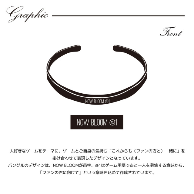 | 商品Data | 今咲ひめのさんとのコラボ企画第2弾! 今回のコラボはトレーナー、スウェットパンツ、バングルをリリース。 【デザイン】 大好きなゲームをテーマに、ゲームとご自身の気持ち「これからも(ファンの方と)一緒に」を 掛け合わせて表現したデザインとなっています。 バングルのデザインは、NOW BLOOMが苗字、@1はゲーム用語であと一人を募集する意味から、 「ファンの君に向けて」という意味を込めて作成されています。 メイドインジャパンのバングルは原型から作成したオリジナルアイテムです。 メッキ加工:国内加工 原型作成:国内 ※アレルギーの反応等がその時の体調や個人差により出る場合がございますので、 金属製アクセサリーを初めてご使用の場合は必ず「パッチテスト」をしてご使用ください。 【パッチテストとは】 金属アレルギーの場合、特殊なテープに24種類の金属試薬をつけてアレルギーの有無を調べる検査です。 皮膚科などで相談をすれば身近にできる検査です。 いくつか検査中に注意する点がありますのでテストを受ける病院で検査について相談してください。 ここでしか手に入らない受注期間限定アイテムです!是非お買い求めください!!! ※現時点での商品の発送予定時期は【5月上旬頃~5月中旬頃順次発送予定】となります。 また、発送予定時期のご連絡やご入金の確認はメールにて行わせていただきますが、 ドメイン指定やメールアドレスの入力間違いなどでメールが届かないなどのお問い合わせが増えております。 受信設定をされている方は下記のアドレスの受信設定をお願いします。 shopmaster@livertine.ko.shopserve.jp ※受注生産の為、発送予定時期が前後する場合がございます。 また、受注生産とさせていただいておりますが、 各色・サイズ毎に生産数を設けさせて頂いております為、 生産数の上限に達しました場合在庫切れとなる場合がございます。 ※商品画像は照明などの影響により実際の色と異なる場合がございます ※加工の特性上、仕上がり寸法及び色のニュアンスが多少異なることがあります。 ※商品代金が10万円以上にて代引き決済を利用してのご注文につきましては、 トラブル防止のため、決済方法をクレジットカード決済もしくはコンビニ決済に変更 させていただく場合がございます。変更前にお電話、メールにてご連絡をさせていただきます。 |