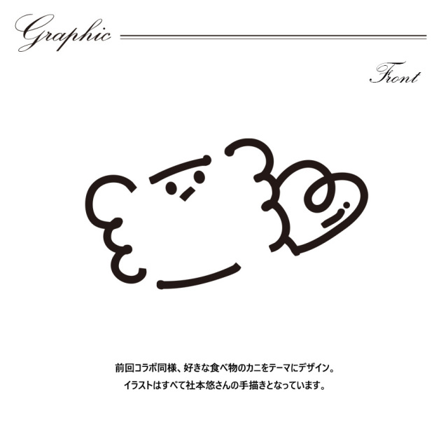 | 商品Data | 社本悠さんとのコラボ企画第2弾! 今回のコラボは半袖Tシャツ、ZIPパーカー、キャップをリリース。 【デザイン】 前回コラボ同様、好きな食べ物のカニをテーマにデザイン。 イラストはすべて社本悠さんの手描きとなっています。 ここでしか手に入らない受注期間限定アイテムです!是非お買い求めください!!! ※商品の発送予定時期は【5月下旬頃~6月中旬頃順次発送予定】となります。 ※受注生産の為、発送予定時期が前後する場合がございます。 ※高額注文の場合には ご注文後にお電話にてご連絡をさせていただく場合がございます。 お電話にてご連絡が取れない場合にはメールにてご連絡させていただき、 ご連絡日より3日以内にご返信をいただけない場合には不正注文の可能性があると判断し トラブル防止のためご注文をキャンセルとさせていただきます。 ※商品によっては撮影時にサンプルを使用しているため若干仕様が異なる場合がございます。 また、サイズ・カラーによっては仕様が異なる場合もございます。 ※手作業で縫製をしているため縫製の仕様により、 個体差が生じてしまいますので、1~2cm程度の誤差は予めご了承くださいませ。 ※洗濯機を使用した場合、お届け時のサイズより多少縮む場合がございます。 洗濯機を使用する場合は裏返してネットに入れることを推奨しております。 また、タンブラー乾燥機を使用しますとプリントが剥がれる恐れがありますので 避けていただきますようお願いいたします。 また、洗濯時の液温は40度以下とし、 塩素系および酸素系漂白剤の使用は避けていただきますようお願いいたします。 アイロンにつきましてもプリント及び刺繍部分は避け、 生地部分にアイロンをかける場合にはあて布をして110度(低温)にてお願いいたします。 ※また、受注生産とさせていただいておりますが、 各色・サイズ毎に生産数に限りがございます為、 生産数の上限に達しました場合在庫切れとなる場合がございます。 |