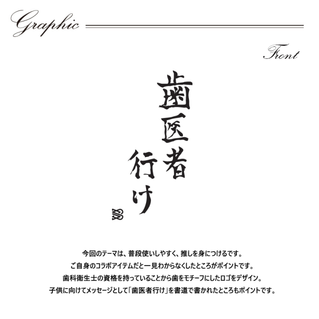 | 商品Data | しおこうじさんとのコラボ企画! 今回のコラボは半袖Tシャツ、トレーナー、キャップをリリース。 【デザイン】 今回のテーマは、普段使いしやすく、推しを身につけるです。 ご自身のコラボアイテムだと一見わからなくしたところがポイントです。 歯科衛生士の資格を持っていることから歯をモチーフにしたロゴをデザイン。 子供に向けてメッセージとして「歯医者行け」を書道で書かれたところもポイントです。 ここでしか手に入らない受注期間限定アイテムです!是非お買い求めください!!! ※商品の発送予定時期は【6月中旬頃~6月下旬頃順次発送予定】となります。 ※受注生産の為、発送予定時期が前後する場合がございます。 ※高額注文の場合にはご注文後にお電話にてご連絡をさせていただく場合がございます。 お電話にてご連絡が取れない場合にはメールにてご連絡させていただき、 ご連絡日より3日以内にご返信をいただけない場合には不正注文の可能性があると判断し トラブル防止のためご注文をキャンセルとさせていただきます。 ※商品によっては撮影時にサンプルを使用しているため若干仕様が異なる場合がございます。 また、サイズ・カラーによっては仕様が異なる場合もございます。 ※手作業で縫製をしているため縫製の仕様により、個体差が生じてしまいますので、1~2cm程度の誤差は予めご了承くださいませ。 ※洗濯機を使用した場合、お届け時のサイズより多少縮む場合がございます。 洗濯機を使用する場合は裏返してネットに入れることを推奨しております。 また、タンブラー乾燥機を使用しますとプリントが剥がれる恐れがありますので避けていただきますようお願いいたします。 また、洗濯時の液温は40度以下とし、 塩素系および酸素系漂白剤の使用は避けていただきますようお願いいたします。 アイロンにつきましてもプリント及び刺繍部分は避け、 生地部分にアイロンをかける場合にはあて布をして110度(低温)にてお願いいたします。 ※また、受注生産とさせていただいておりますが、各色・サイズ毎に生産数に限りがございます為、 生産数の上限に達しました場合在庫切れとなる場合がございます。 |