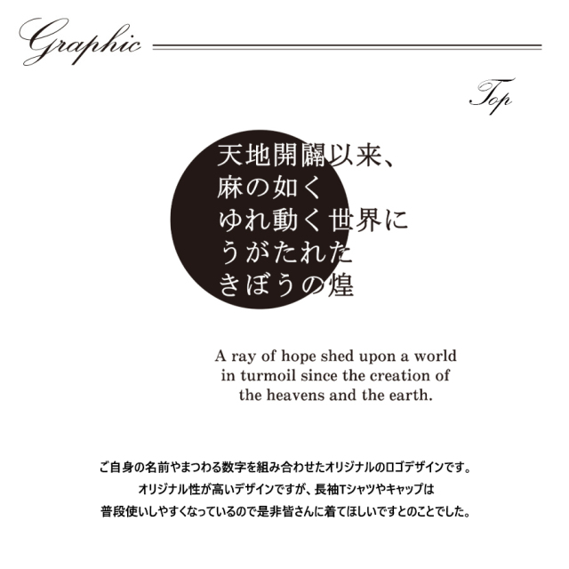 | 商品Data | 天麻ゆうきさんとのコラボ企画第3弾! 今回のコラボは長袖Tシャツ、キャップ、クッション をリリース。 【デザイン】 ご自身の名前やまつわる数字を組み合わせたオリジナルのロゴデザインです。 オリジナル性が高いデザインですが、長袖Tシャツやキャップは 普段使いしやすくなっているので是非皆さんに着てほしいですとのことでした。 ここでしか手に入らない受注期間限定アイテムです!是非お買い求めください!!! ※商品の発送予定時期は 【7月上旬頃〜7月中旬頃順次発送予定】 となります。 ※受注生産の為、発送予定時期が前後する場合がございます。 ※高額注文の場合にはご注文後にお電話にてご連絡をさせていただく場合がございます。 お電話にてご連絡が取れない場合にはメールにてご連絡させていただき、 ご連絡日より3日以内にご返信をいただけない場合には不正注文の可能性があると判断し トラブル防止のためご注文をキャンセルとさせていただきます。 ※商品によっては撮影時にサンプルを使用しているため若干仕様が異なる場合がございます。 また、サイズ・カラーによっては仕様が異なる場合もございます。 ※手作業で縫製をしているため縫製の仕様により、 個体差が生じてしまいますので、1~2cm程度の誤差は予めご了承くださいませ。 ※洗濯機を使用した場合、お届け時のサイズより多少縮む場合がございます。 洗濯機を使用する場合は裏返してネットに入れることを推奨しております。 また、タンブラー乾燥機を使用しますとプリントが剥がれる恐れがありますので 避けていただきますようお願いいたします。 また、洗濯時の液温は40度以下とし、 塩素系および酸素系漂白剤の使用は避けていただきますようお願いいたします。 アイロンにつきましてもプリント及び刺繍部分は避け、 生地部分にアイロンをかける場合にはあて布をして110度(低温)にてお願いいたします。 ※また、受注生産とさせていただいておりますが、 各色・サイズ毎に生産数に限りがございます為、 生産数の上限に達しました場合在庫切れとなる場合がございます。 |