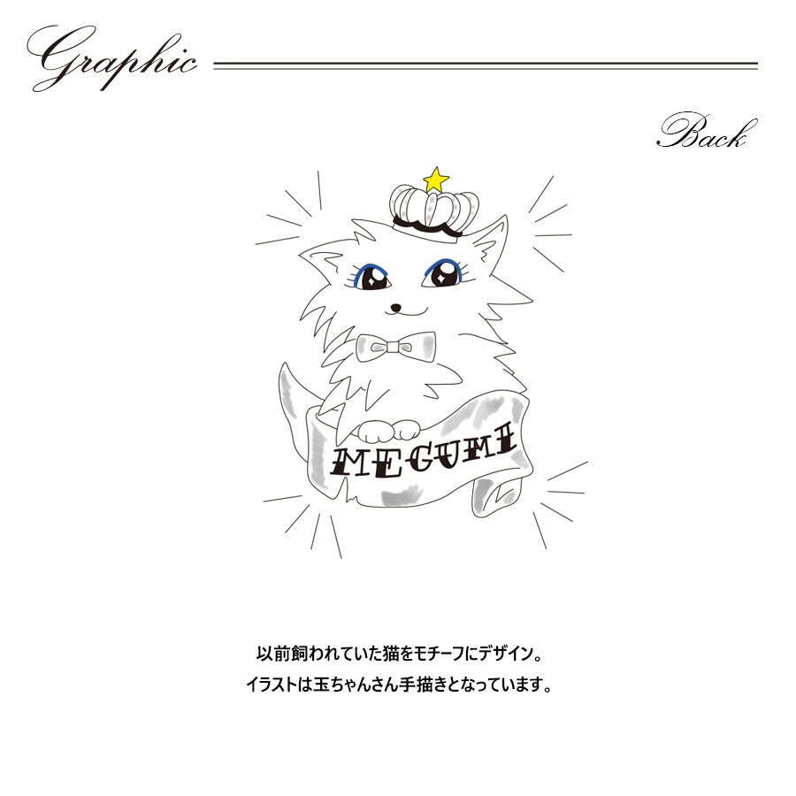| 商品Data | 玉ちゃんさんとのコラボ企画第3弾! 今回のコラボはプルオーバーパーカー、半袖Tシャツ、スウェットパンツをリリース。 【デザイン】 以前飼われていた猫をモチーフにデザイン。 イラストは玉ちゃんさん手描きとなっています。 ここでしか手に入らない受注期間限定アイテムです!是非お買い求めください!!! ※商品の発送予定時期は【8月下旬頃〜9月上旬頃順次発送予定】 となります。 ※受注生産の為、発送予定時期が前後する場合がございます。 ※高額注文の場合には ご注文後にお電話にてご連絡をさせていただく場合がございます。 お電話にてご連絡が取れない場合にはメールにてご連絡させていただき、 ご連絡日より3日以内にご返信をいただけない場合には不正注文の可能性があると判断し トラブル防止のためご注文をキャンセルとさせていただきます。 ※商品によっては撮影時にサンプルを使用しているため若干仕様が異なる場合がございます。 また、サイズ・カラーによっては仕様が異なる場合もございます。 ※手作業で縫製をしているため縫製の仕様により、 個体差が生じてしまいますので、1~2cm程度の誤差は予めご了承くださいませ。 ※洗濯機を使用した場合、お届け時のサイズより多少縮む場合がございます。 洗濯機を使用する場合は裏返してネットに入れることを推奨しております。 また、タンブラー乾燥機を使用しますとプリントが剥がれる恐れがありますので 避けていただきますようお願いいたします。 また、洗濯時の液温は40度以下とし、 塩素系および酸素系漂白剤の使用は避けていただきますようお願いいたします。 アイロンにつきましてもプリント及び刺繍部分は避け、 生地部分にアイロンをかける場合にはあて布をして110度(低温)にてお願いいたします。 ※また、受注生産とさせていただいておりますが、 各色・サイズ毎に生産数に限りがございます為、 生産数の上限に達しました場合在庫切れとなる場合がございます。 |