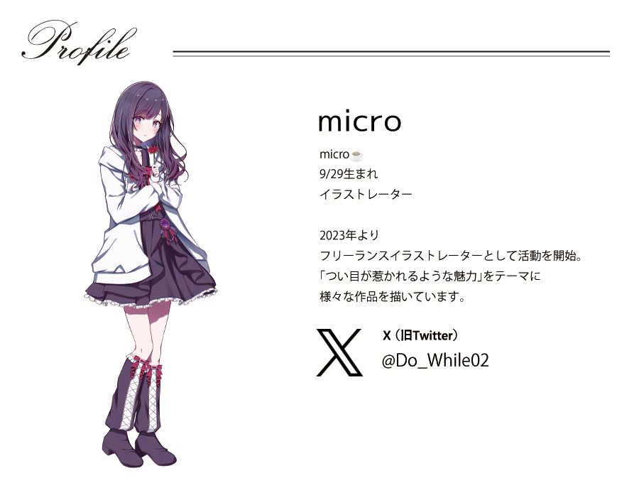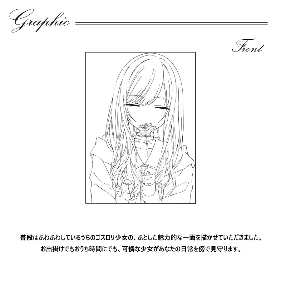 | 商品Data | microさんとのコラボ企画! 今回のコラボは半袖Tシャツ、長袖Tシャツ、トートバッグをリリース。 【デザイン】 普段はふわふわしているうちのゴスロリ少女の、 ふとした魅力的な一面を描かせていただきました。 お出掛けでもおうち時間にでも、可憐な少女があなたの日常を傍で見守ります。 ここでしか手に入らない受注期間限定アイテムです!是非お買い求めください!!!