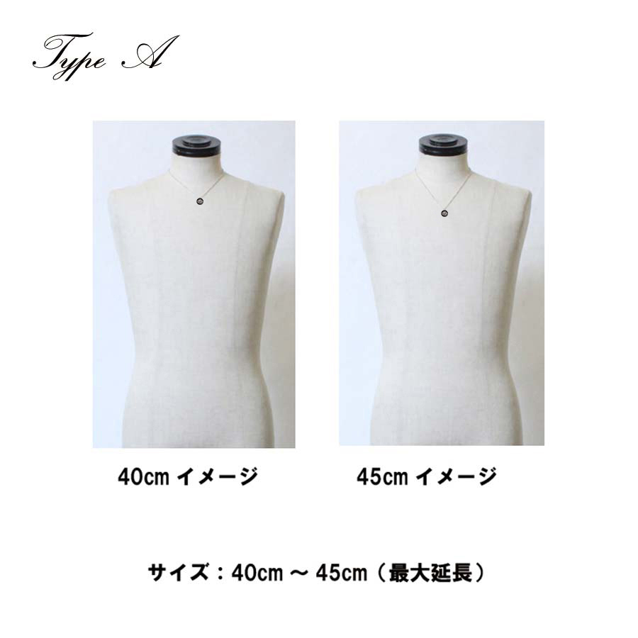 | サイズ | チェーン長さ A:40cm~45cm(サイズ調整5cm分) B:45cm~50cm(サイズ調整5cm分) |