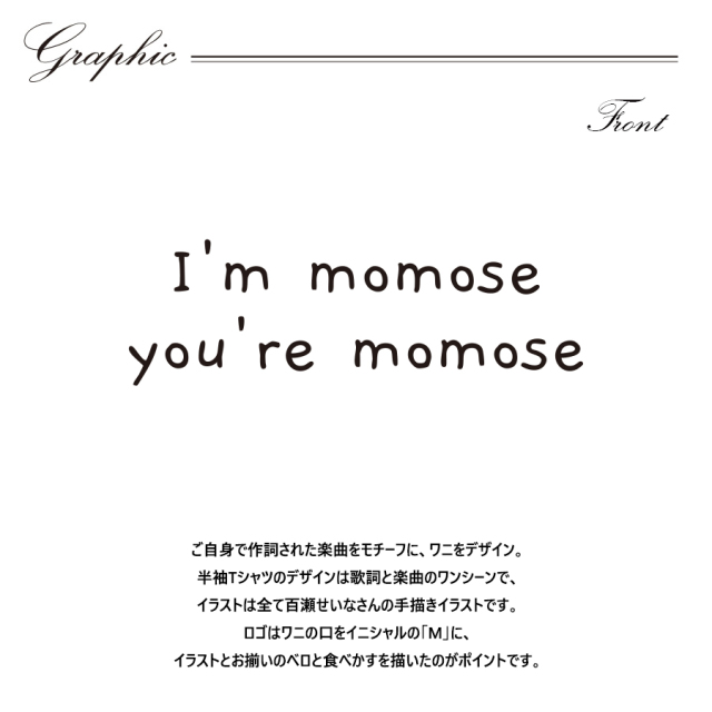 | 商品Data | 百瀬せいなさんとのコラボ企画第2弾! 今回のコラボは半袖Tシャツ、トレーナー、トートバッグをリリース。 【デザイン】 ご自身で作詞された楽曲をモチーフに、ワニをデザイン。 半袖Tシャツのデザインは歌詞と楽曲のワンシーンで、 イラストは全て百瀬せいなさんの手描きイラストです。 ロゴはワニの口をイニシャルの「M」に、 イラストとお揃いのベロと食べかすを描いたのがポイントです。 ここでしか手に入らない受注期間限定アイテムです!是非お買い求めください!!! ※商品の発送予定時期は【9月下旬頃~10月下旬頃順次発送】 となります。 ※受注生産の為、発送予定時期が前後する場合がございます。 ※高額注文の場合には ご注文後にお電話にてご連絡をさせていただく場合がございます。 お電話にてご連絡が取れない場合にはメールにてご連絡させていただき、 ご連絡日より3日以内にご返信をいただけない場合には不正注文の可能性があると判断し トラブル防止のためご注文をキャンセルとさせていただきます。 ※商品によっては撮影時にサンプルを使用しているため若干仕様が異なる場合がございます。 また、サイズ・カラーによっては仕様が異なる場合もございます。 ※手作業で縫製をしているため縫製の仕様により、 個体差が生じてしまいますので、1~2cm程度の誤差は予めご了承くださいませ。 ※洗濯機を使用した場合、お届け時のサイズより多少縮む場合がございます。 洗濯機を使用する場合は裏返してネットに入れることを推奨しております。 また、タンブラー乾燥機を使用しますとプリントが剥がれる恐れがありますので 避けていただきますようお願いいたします。 また、洗濯時の液温は40度以下とし、 塩素系および酸素系漂白剤の使用は避けていただきますようお願いいたします。 アイロンにつきましてもプリント及び刺繍部分は避け、 生地部分にアイロンをかける場合にはあて布をして110度(低温)にてお願いいたします。 ※また、受注生産とさせていただいておりますが、 各色・サイズ毎に生産数に限りがございます為、 生産数の上限に達しました場合在庫切れとなる場合がございます。 |