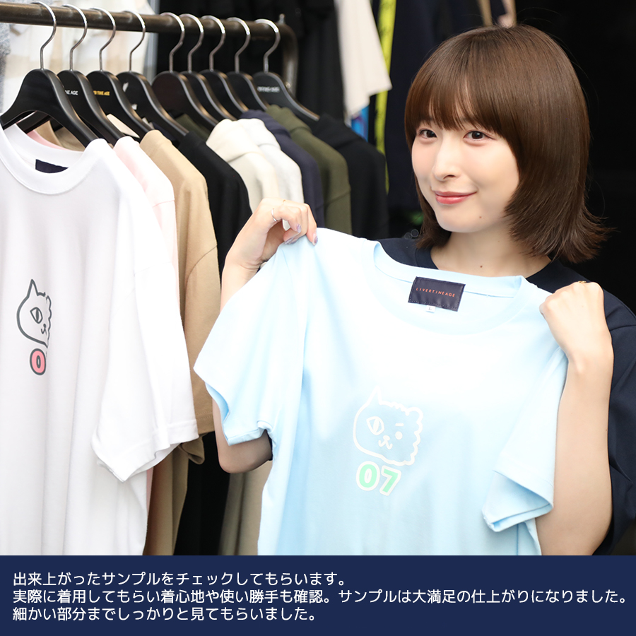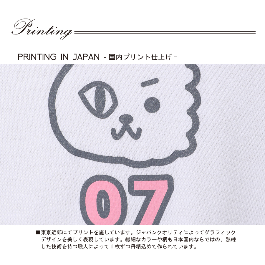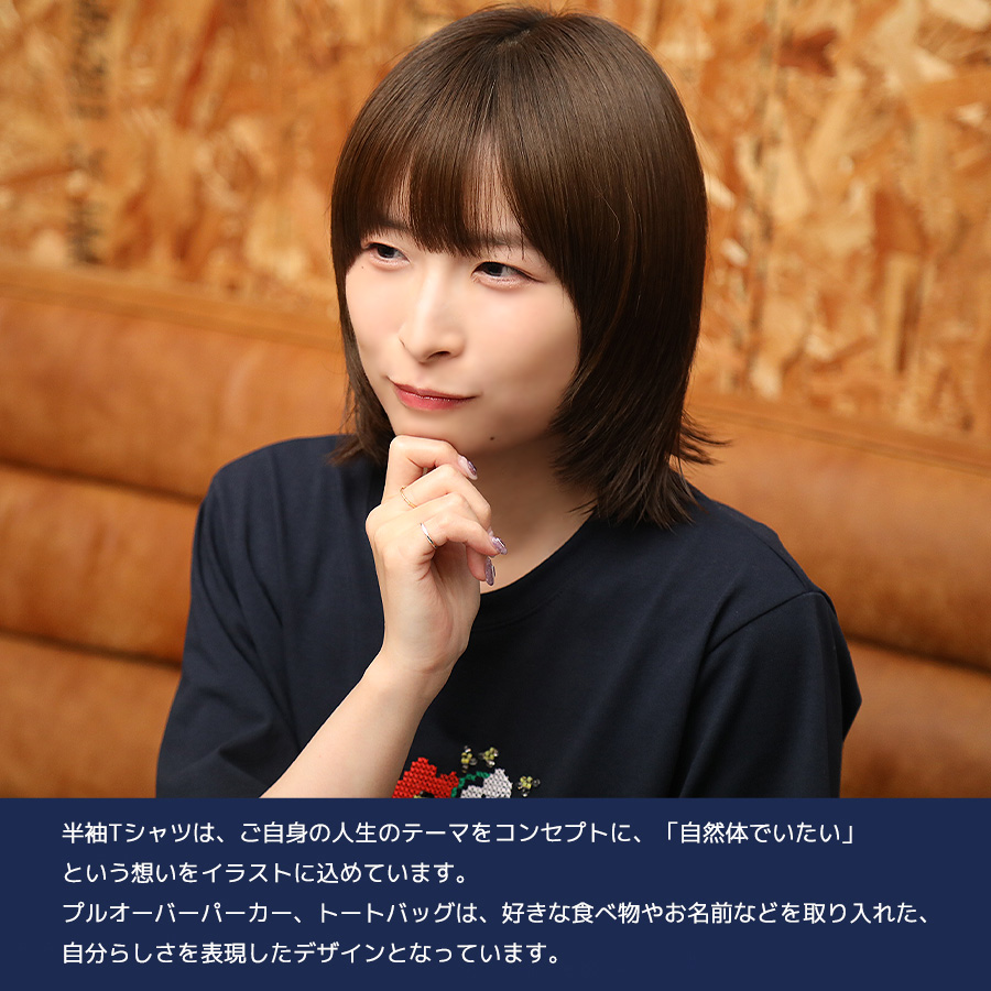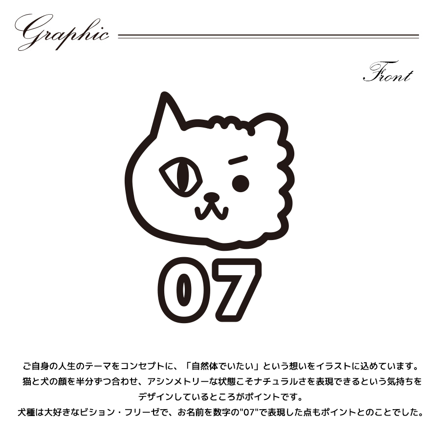 | 商品Data | 小澤麗那さんとのコラボ企画! 今回のコラボは半袖Tシャツ、プルオーバーパーカー、トートバッグをリリース。 【デザイン】 ご自身の人生のテーマをコンセプトに、「自然体でいたい」という想いをイラストに込めています。 猫と犬の顔を半分ずつ合わせ、アシンメトリーな状態こそナチュラルさを表現できるという気持ちを デザインしているところがポイントです。 犬種は大好きなビション・フリーゼで、お名前を数字の"07"で表現した点もポイントとのことでした。 ここでしか手に入らない受注期間限定アイテムです!是非お買い求めください!!!