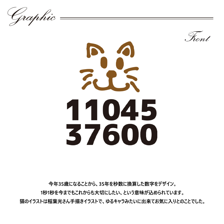 | 商品Data | 稲葉光さんとのコラボ企画! 今回のコラボはトレーナー、ジョガーパンツ、キャップをリリース。 【デザイン】 今年35歳になることから、35年を秒数に換算した数字をデザイン。 1秒1秒を今までもこれからも大切にしたい、という意味が込められています。 猫のイラストは稲葉光さん手描きイラストで、ゆるキャラみたいに出来てお気に入りとのことでした。 ここでしか手に入らない受注期間限定アイテムです!是非お買い求めください!!! ※商品の発送予定時期は【10月下旬頃~11月上旬頃順次発送予定】となります。 ※受注生産の為、発送予定時期が前後する場合がございます。 ※高額注文の場合にはご注文後にお電話にてご連絡をさせていただく場合がございます。 お電話にてご連絡が取れない場合にはメールにてご連絡させていただき、 ご連絡日より3日以内にご返信をいただけない場合には不正注文の可能性があると判断し トラブル防止のためご注文をキャンセルとさせていただきます。 ※商品によっては撮影時にサンプルを使用しているため若干仕様が異なる場合がございます。 また、サイズ・カラーによっては仕様が異なる場合もございます。 ※手作業で縫製をしているため縫製の仕様により、 個体差が生じてしまいますので、1~2cm程度の誤差は予めご了承くださいませ。 ※洗濯機を使用した場合、お届け時のサイズより多少縮む場合がございます。 洗濯機を使用する場合は裏返してネットに入れることを推奨しております。 また、タンブラー乾燥機を使用しますとプリントが剥がれる恐れがありますので 避けていただきますようお願いいたします。 また、洗濯時の液温は40度以下とし、 塩素系および酸素系漂白剤の使用は避けていただきますようお願いいたします。 アイロンにつきましてもプリント及び刺繍部分は避け、 生地部分にアイロンをかける場合にはあて布をして110度(低温)にてお願いいたします。 ※また、受注生産とさせていただいておりますが、各色・サイズ毎に生産数に限りがございます為、 生産数の上限に達しました場合在庫切れとなる場合がございます。 |