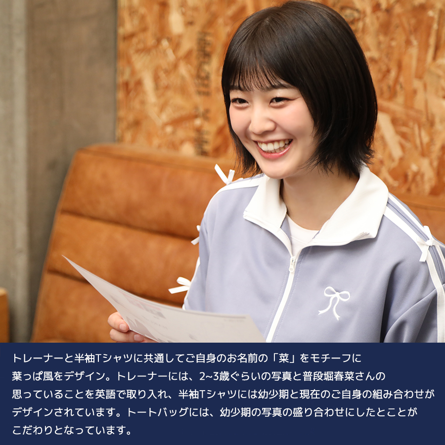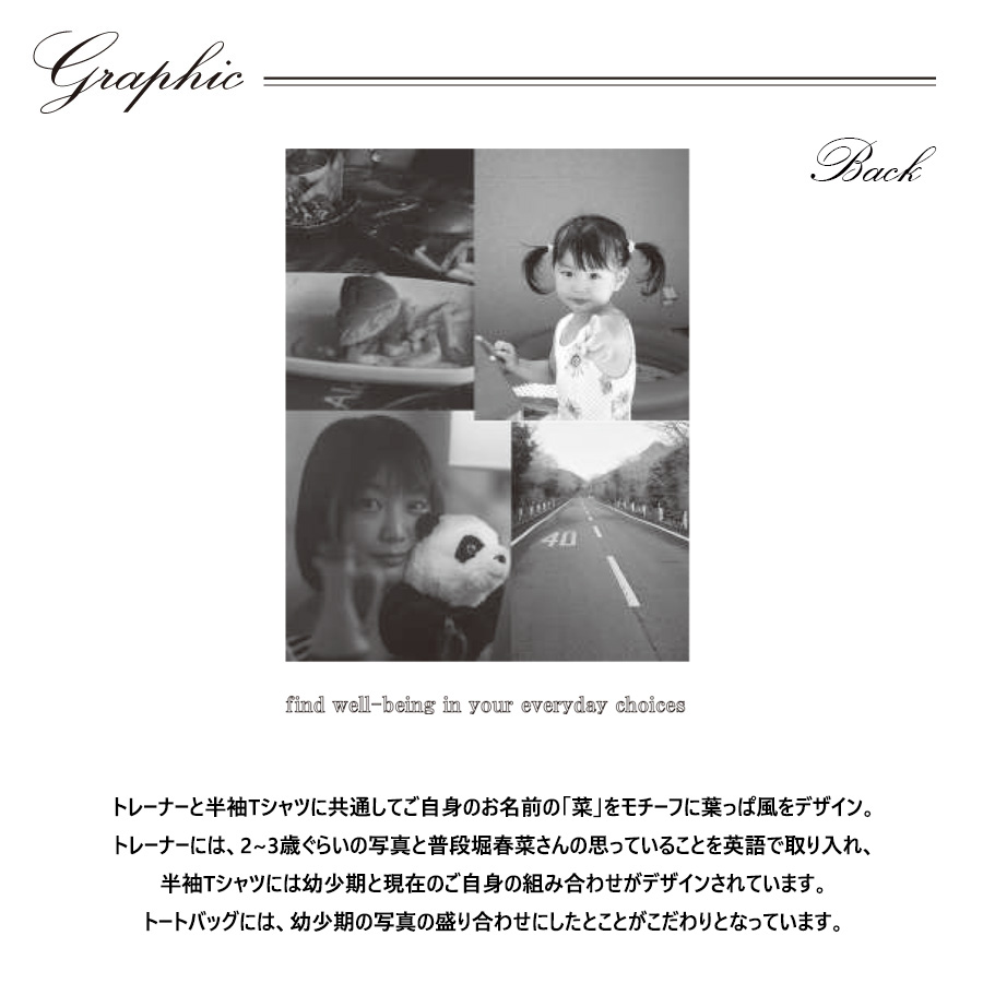 | 商品Data | 堀春菜さんとのコラボ企画! 今回のコラボは半袖Tシャツ、トレーナー、トートバッグをリリース。 【デザイン】 トレーナーと半袖Tシャツに共通してご自身のお名前の「菜」をモチーフに葉っぱ風をデザイン。 トレーナーには、2~3歳ぐらいの写真と普段堀春菜さんの思っていることを英語で取り入れ、 半袖Tシャツには幼少期と現在のご自身の組み合わせがデザインされています。 トートバッグには、幼少期の写真の盛り合わせにしたとことがこだわりとなっています。 ここでしか手に入らない受注期間限定アイテムです!是非お買い求めください!!! ※商品の発送予定時期は【11月下旬頃~12月上旬頃順次発送予定】 となります。 ※受注生産の為、発送予定時期が前後する場合がございます。 ※高額注文の場合には ご注文後にお電話にてご連絡をさせていただく場合がございます。 お電話にてご連絡が取れない場合にはメールにてご連絡させていただき、 ご連絡日より3日以内にご返信をいただけない場合には不正注文の可能性があると判断し トラブル防止のためご注文をキャンセルとさせていただきます。 ※商品によっては撮影時にサンプルを使用しているため若干仕様が異なる場合がございます。 また、サイズ・カラーによっては仕様が異なる場合もございます。 ※手作業で縫製をしているため縫製の仕様により、 個体差が生じてしまいますので、1~2cm程度の誤差は予めご了承くださいませ。 ※洗濯機を使用した場合、お届け時のサイズより多少縮む場合がございます。 洗濯機を使用する場合は裏返してネットに入れることを推奨しております。 また、タンブラー乾燥機を使用しますとプリントが剥がれる恐れがありますので 避けていただきますようお願いいたします。 また、洗濯時の液温は40度以下とし、 塩素系および酸素系漂白剤の使用は避けていただきますようお願いいたします。 アイロンにつきましてもプリント及び刺繍部分は避け、 生地部分にアイロンをかける場合にはあて布をして110度(低温)にてお願いいたします。 ※また、受注生産とさせていただいておりますが、 各色・サイズ毎に生産数に限りがございます為、 生産数の上限に達しました場合在庫切れとなる場合がございます。 |