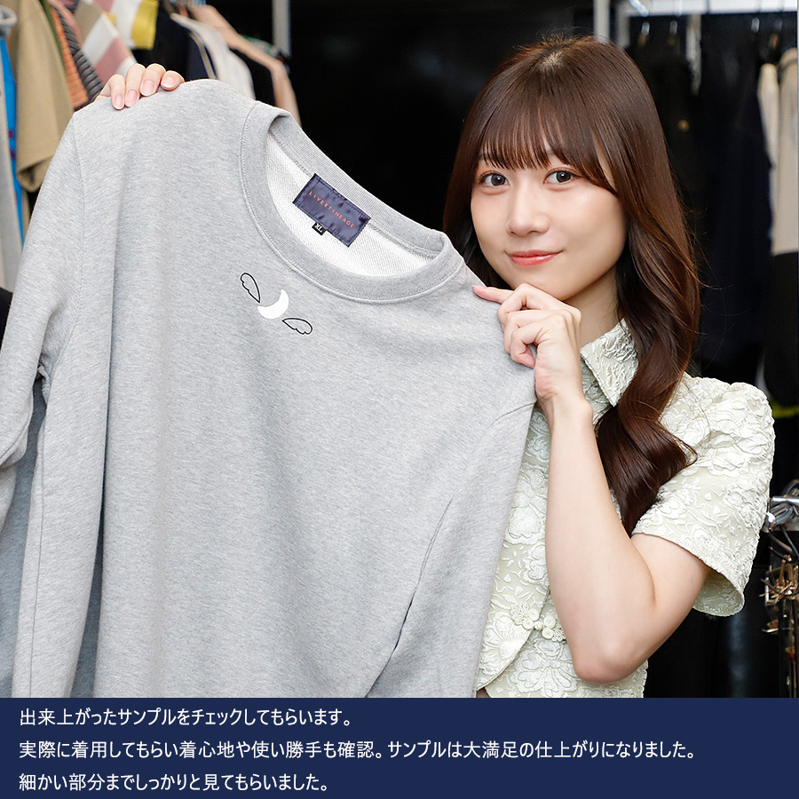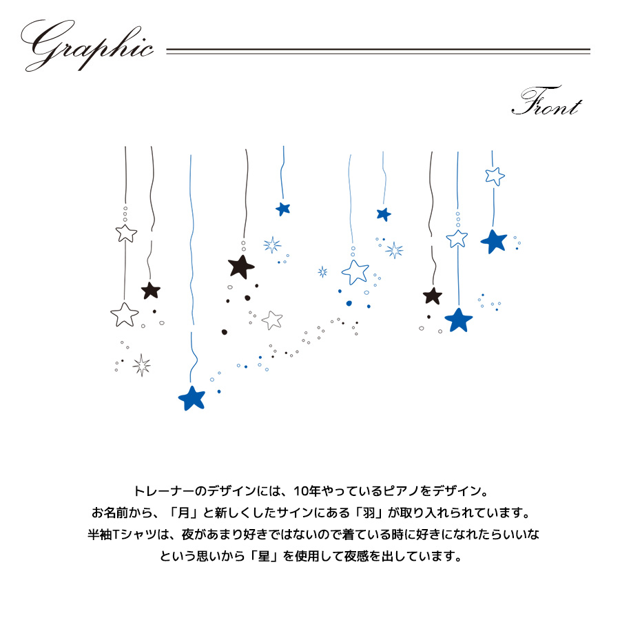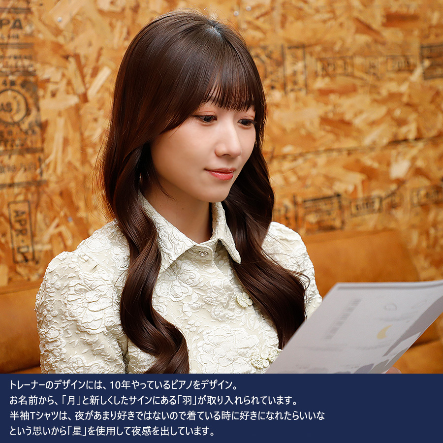 | 商品Data | 長月明日香さんとのコラボ企画! 今回のコラボは半袖Tシャツ、トレーナーをリリース。 【デザイン】 トレーナーのデザインには、10年やっているピアノをデザイン。 お名前から、「月」と新しくしたサインにある「羽」が取り入れられています。 半袖Tシャツは、夜があまり好きではないので着ている時に好きになれたらいいな という思いから「星」を使用して夜感を出しています。 ここでしか手に入らない受注期間限定アイテムです!是非お買い求めください!!! ※商品の発送予定時期は 【2月上旬頃〜2月中旬頃順次発送予定】 となります。 ※受注生産の為、発送予定時期が前後する場合がございます。 ※高額注文の場合には ご注文後にお電話にてご連絡をさせていただく場合がございます。 お電話にてご連絡が取れない場合にはメールにてご連絡させていただき、 ご連絡日より3日以内にご返信をいただけない場合には不正注文の可能性があると判断し トラブル防止のためご注文をキャンセルとさせていただきます。 ※商品によっては撮影時にサンプルを使用しているため若干仕様が異なる場合がございます。 また、サイズ・カラーによっては仕様が異なる場合もございます。 ※手作業で縫製をしているため縫製の仕様により、 個体差が生じてしまいますので、1~2cm程度の誤差は予めご了承くださいませ。 ※洗濯機を使用した場合、お届け時のサイズより多少縮む場合がございます。 洗濯機を使用する場合は裏返してネットに入れることを推奨しております。 また、タンブラー乾燥機を使用しますとプリントが剥がれる恐れがありますので 避けていただきますようお願いいたします。 また、洗濯時の液温は40度以下とし、 塩素系および酸素系漂白剤の使用は避けていただきますようお願いいたします。 アイロンにつきましてもプリント及び刺繍部分は避け、 生地部分にアイロンをかける場合にはあて布をして110度(低温)にてお願いいたします。 ※また、受注生産とさせていただいておりますが、 各色・サイズ毎に生産数に限りがございます為、 生産数の上限に達しました場合在庫切れとなる場合がございます。 |