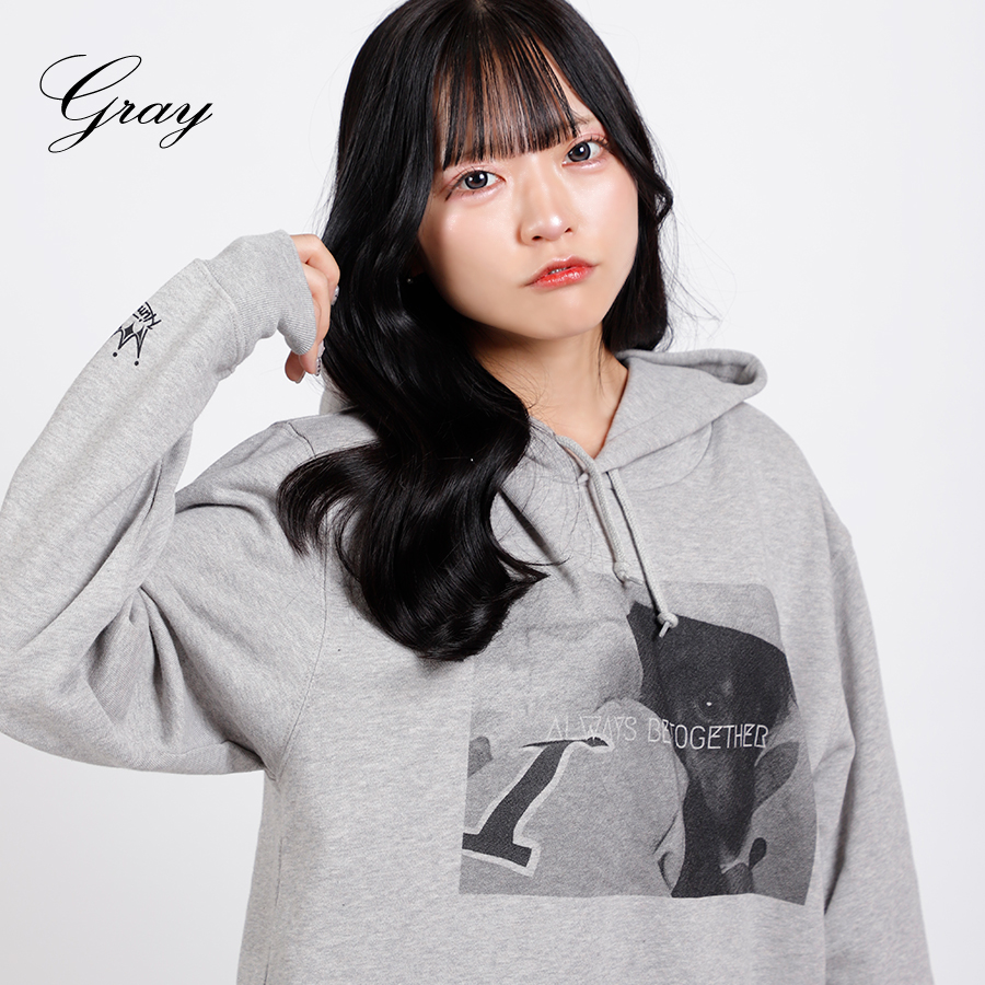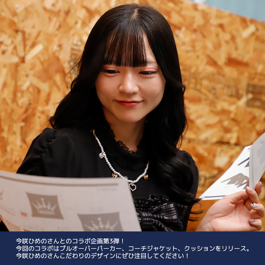 | 商品Data | 今咲ひめのさんとのコラボ企画第3弾! 今回のコラボはプルオーバーパーカー、コーチジャケット、クッションをリリース。 【デザイン】 いつも私が1番であってほしいということで、「ティアラ」デザインが全てに取り入れられています。 プルオーバーパーカーには、愛犬が初めて自宅に来た時の写真がプリントされ「いつも一緒に」と いう言葉が添えられています。 コーチジャケットには普段応援してくれる方へ向けて英語で「仲間へ」というニュアンスのメッセージ デザインを背面に入れています。 コーチジャケットはプルオーバーパーカーとセットで着ていただきたくどれもお勧めですが「CEMENT・WINE」あたりがお気に入りの色とのことでした。 ここでしか手に入らない受注期間限定アイテムです!是非お買い求めください!!!
