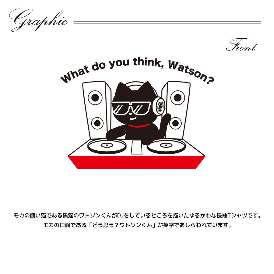 | 商品Data | 宮舞モカさんとのコラボ企画! 今回のコラボは長袖Tシャツ、ZIPパーカー、ポロシャツをリリース。 【デザイン】 モカの飼い猫である黒猫のワトソンくんがDJをしているところを描いたゆるかわな長袖Tシャツです。 モカの口癖である「どう思う?ワトソンくん」が英字であしらわれています。 ここでしか手に入らない受注期間限定アイテムです!是非お買い求めください!!! ※商品の発送予定時期は【1月中旬頃〜2月上旬頃順次発送予定】 となります。 ※受注生産の為、発送予定時期が前後する場合がございます。 ※高額注文の場合には ご注文後にお電話にてご連絡をさせていただく場合がございます。 お電話にてご連絡が取れない場合にはメールにてご連絡させていただき、 ご連絡日より3日以内にご返信をいただけない場合には不正注文の可能性があると判断し トラブル防止のためご注文をキャンセルとさせていただきます。 ※商品によっては撮影時にサンプルを使用しているため若干仕様が異なる場合がございます。 また、サイズ・カラーによっては仕様が異なる場合もございます。 ※手作業で縫製をしているため縫製の仕様により、 個体差が生じてしまいますので、1~2cm程度の誤差は予めご了承くださいませ。 ※洗濯機を使用した場合、お届け時のサイズより多少縮む場合がございます。 洗濯機を使用する場合は裏返してネットに入れることを推奨しております。 また、タンブラー乾燥機を使用しますとプリントが剥がれる恐れがありますので 避けていただきますようお願いいたします。 また、洗濯時の液温は40度以下とし、 塩素系および酸素系漂白剤の使用は避けていただきますようお願いいたします。 アイロンにつきましてもプリント及び刺繍部分は避け、 生地部分にアイロンをかける場合にはあて布をして110度(低温)にてお願いいたします。 ※また、受注生産とさせていただいておりますが、 各色・サイズ毎に生産数に限りがございます為、 生産数の上限に達しました場合在庫切れとなる場合がございます。 |
