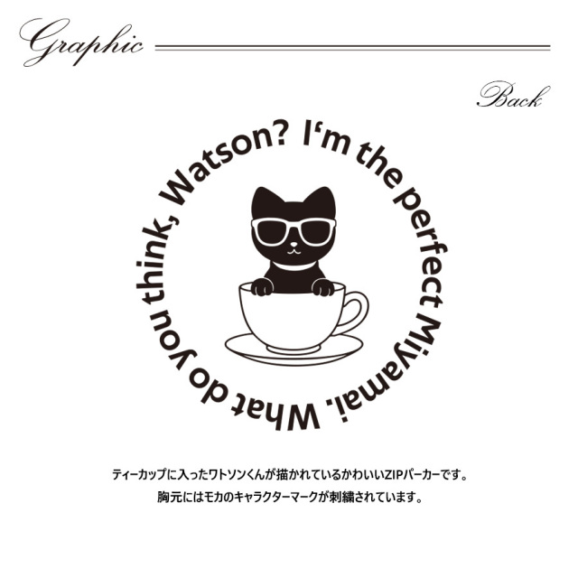 | 商品Data | 宮舞モカさんとのコラボ企画! 今回のコラボは長袖Tシャツ、ZIPパーカー、ポロシャツをリリース。 【デザイン】 ティーカップに入ったワトソンくんが描かれているかわいいZIPパーカーです。 胸元にはモカのキャラクターマークが刺繍されています。 ここでしか手に入らない受注期間限定アイテムです!是非お買い求めください!!! ※商品の発送予定時期は【1月中旬頃〜2月上旬頃順次発送予定】 となります。 ※受注生産の為、発送予定時期が前後する場合がございます。 ※高額注文の場合にはご注文後にお電話にてご連絡をさせていただく場合がございます。 お電話にてご連絡が取れない場合にはメールにてご連絡させていただき、 ご連絡日より3日以内にご返信をいただけない場合には不正注文の可能性があると判断し トラブル防止のためご注文をキャンセルとさせていただきます。 ※商品によっては撮影時にサンプルを使用しているため若干仕様が異なる場合がございます。 また、サイズ・カラーによっては仕様が異なる場合もございます。 ※手作業で縫製をしているため縫製の仕様により、 個体差が生じてしまいますので、1~2cm程度の誤差は予めご了承くださいませ。 ※洗濯機を使用した場合、お届け時のサイズより多少縮む場合がございます。 洗濯機を使用する場合は裏返してネットに入れることを推奨しております。 また、タンブラー乾燥機を使用しますとプリントが剥がれる恐れがありますので 避けていただきますようお願いいたします。 また、洗濯時の液温は40度以下とし、 塩素系および酸素系漂白剤の使用は避けていただきますようお願いいたします。 アイロンにつきましてもプリント及び刺繍部分は避け、 生地部分にアイロンをかける場合にはあて布をして110度(低温)にてお願いいたします。 ※また、受注生産とさせていただいておりますが、 各色・サイズ毎に生産数に限りがございます為、 生産数の上限に達しました場合在庫切れとなる場合がございます。 |