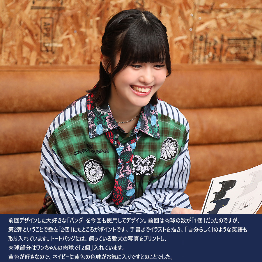 | 商品Data | 久家心さんとのコラボ企画第2弾! 今回のコラボはトレーナー、スウェットパンツ、トートバッグをリリース。 【デザイン】 前回デザインした大好きな「パンダ」を今回も使用してデザイン。 前回は肉球の数が「1個」だったのですが、 第2弾ということで数を「2個」にたところがポイントです。 手書きでイラストを描き、「自分らしく」のような英語も取り入れています。 トートバッグには、飼っている愛犬の写真をプリントし、 肉球部分はワンちゃんの肉球で「2個」入れています。 黄色が好きなので、ネイビーに黄色の色味がお気に入りですとのことでした。 ここでしか手に入らない受注期間限定アイテムです!是非お買い求めください!!! ※商品の発送予定時期は【2月中旬頃〜2月下旬頃順次発送予定】 となります。 ※受注生産の為、発送予定時期が前後する場合がございます。 ※高額注文の場合には ご注文後にお電話にてご連絡をさせていただく場合がございます。 お電話にてご連絡が取れない場合にはメールにてご連絡させていただき、 ご連絡日より3日以内にご返信をいただけない場合には不正注文の可能性があると判断し トラブル防止のためご注文をキャンセルとさせていただきます。 ※商品によっては撮影時にサンプルを使用しているため若干仕様が異なる場合がございます。 また、サイズ・カラーによっては仕様が異なる場合もございます。 ※手作業で縫製をしているため縫製の仕様により、 個体差が生じてしまいますので、1~2cm程度の誤差は予めご了承くださいませ。 ※洗濯機を使用した場合、お届け時のサイズより多少縮む場合がございます。 洗濯機を使用する場合は裏返してネットに入れることを推奨しております。 また、タンブラー乾燥機を使用しますとプリントが剥がれる恐れがありますので 避けていただきますようお願いいたします。 また、洗濯時の液温は40度以下とし、 塩素系および酸素系漂白剤の使用は避けていただきますようお願いいたします。 アイロンにつきましてもプリント及び刺繍部分は避け、 生地部分にアイロンをかける場合にはあて布をして110度(低温)にてお願いいたします。 ※また、受注生産とさせていただいておりますが、 各色・サイズ毎に生産数に限りがございます為、 生産数の上限に達しました場合在庫切れとなる場合がございます。 |