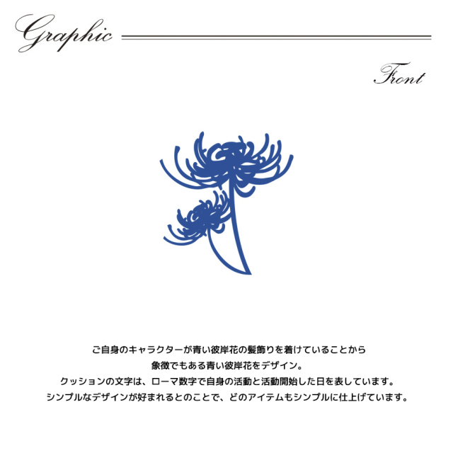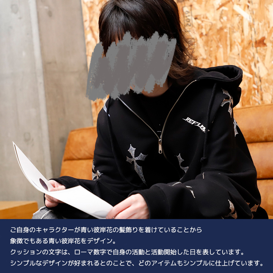 | 商品Data | xaiさんとのコラボ企画! 今回のコラボは半袖Tシャツ、ZIPパーカー、キャップ、クッションをリリース。 【デザイン】 ご自身のキャラクターが青い彼岸花の髪飾りを着けていることから象徴でもある青い彼岸花をデザイン。 クッションの文字は、ローマ数字で自身の活動と活動開始した日を表しています。 シンプルなデザインが好まれるとのことで、どのアイテムもシンプルに仕上げています。 ここでしか手に入らない受注期間限定アイテムです!是非お買い求めください!!! ※商品の発送予定時期は【3月下旬頃~4月上旬頃順次発送予定】となります。 ※受注生産の為、発送予定時期が前後する場合がございます。 ※高額注文の場合には ご注文後にお電話にてご連絡をさせていただく場合がございます。 お電話にてご連絡が取れない場合にはメールにてご連絡させていただき、 ご連絡日より3日以内にご返信をいただけない場合には不正注文の可能性があると判断し トラブル防止のためご注文をキャンセルとさせていただきます。 ※商品によっては撮影時にサンプルを使用しているため若干仕様が異なる場合がございます。 また、サイズ・カラーによっては仕様が異なる場合もございます。 ※手作業で縫製をしているため縫製の仕様により、 個体差が生じてしまいますので、1~2cm程度の誤差は予めご了承くださいませ。 ※洗濯機を使用した場合、お届け時のサイズより多少縮む場合がございます。 洗濯機を使用する場合は裏返してネットに入れることを推奨しております。 また、タンブラー乾燥機を使用しますとプリントが剥がれる恐れがありますので 避けていただきますようお願いいたします。 また、洗濯時の液温は40度以下とし、 塩素系および酸素系漂白剤の使用は避けていただきますようお願いいたします。 アイロンにつきましてもプリント及び刺繍部分は避け、 生地部分にアイロンをかける場合にはあて布をして110度(低温)にてお願いいたします。 ※また、受注生産とさせていただいておりますが、 各色・サイズ毎に生産数に限りがございます為、 生産数の上限に達しました場合在庫切れとなる場合がございます。 |