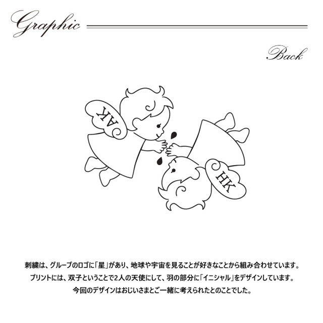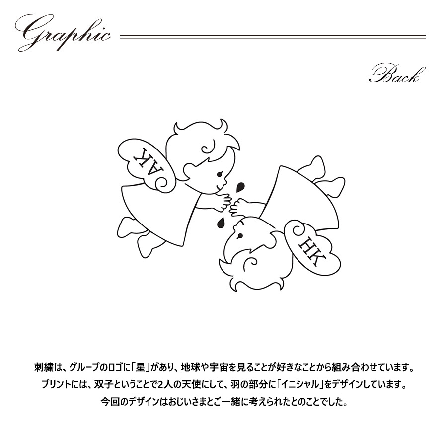 | 商品Data | 柏綾菜(SUPER☆GiRLS)さんとのコラボ企画! 今回のコラボはZIPパーカー、半袖Tシャツ、キャップをリリース。 【デザイン】 刺繍は、グループのロゴに「星」があり、 地球や宇宙を見ることが好きなことから組み合わせています。 プリントには、双子ということで2人の天使にして、 羽の部分に「イニシャル」をデザインしています。 今回のデザインはおじいさまとご一緒に考えられたとのことでした。 ここでしか手に入らない受注期間限定アイテムです!是非お買い求めください!!! ※商品の発送予定時期は【3月中旬頃~3月下旬頃順次発送予定】 となります。 ※受注生産の為、発送予定時期が前後する場合がございます。 ※高額注文の場合にはご注文後にお電話にてご連絡をさせていただく場合がございます。 お電話にてご連絡が取れない場合にはメールにてご連絡させていただき、 ご連絡日より3日以内にご返信をいただけない場合には不正注文の可能性があると判断し トラブル防止のためご注文をキャンセルとさせていただきます。 ※商品によっては撮影時にサンプルを使用しているため若干仕様が異なる場合がございます。 また、サイズ・カラーによっては仕様が異なる場合もございます。 ※手作業で縫製をしているため縫製の仕様により、 個体差が生じてしまいますので、1~2cm程度の誤差は予めご了承くださいませ。 ※洗濯機を使用した場合、お届け時のサイズより多少縮む場合がございます。 洗濯機を使用する場合は裏返してネットに入れることを推奨しております。 また、タンブラー乾燥機を使用しますとプリントが剥がれる恐れがありますので 避けていただきますようお願いいたします。 また、洗濯時の液温は40度以下とし、 塩素系および酸素系漂白剤の使用は避けていただきますようお願いいたします。 アイロンにつきましてもプリント及び刺繍部分は避け、 生地部分にアイロンをかける場合にはあて布をして110度(低温)にてお願いいたします。 ※また、受注生産とさせていただいておりますが、 各色・サイズ毎に生産数に限りがございます為、 生産数の上限に達しました場合在庫切れとなる場合がございます。 |