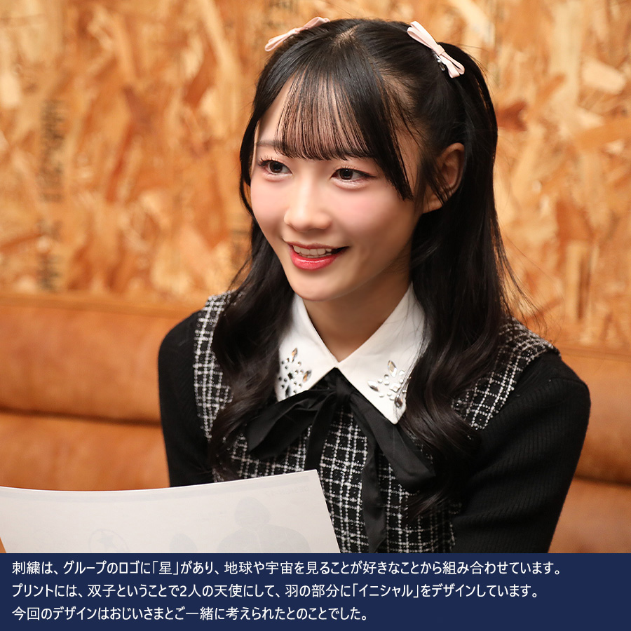 | 商品Data | 柏綾菜(SUPER☆GiRLS)さんとのコラボ企画! 今回のコラボは半袖Tシャツ、ZIPパーカー、キャップをリリース。 【デザイン】 刺繍は、グループのロゴに「星」があり、 地球や宇宙を見ることが好きなことから組み合わせています。 プリントには、双子ということで2人の天使にして、 羽の部分に「イニシャル」をデザインしています。 今回のデザインはおじいさまとご一緒に考えられたとのことでした。 ここでしか手に入らない受注期間限定アイテムです!是非お買い求めください!!! ※商品の発送予定時期は【3月中旬頃~3月下旬頃順次発送予定】 となります。 ※受注生産の為、発送予定時期が前後する場合がございます。 ※高額注文の場合には ご注文後にお電話にてご連絡をさせていただく場合がございます。 お電話にてご連絡が取れない場合にはメールにてご連絡させていただき、 ご連絡日より3日以内にご返信をいただけない場合には不正注文の可能性があると判断し トラブル防止のためご注文をキャンセルとさせていただきます。 ※商品によっては撮影時にサンプルを使用しているため若干仕様が異なる場合がございます。 また、サイズ・カラーによっては仕様が異なる場合もございます。 ※手作業で縫製をしているため縫製の仕様により、 個体差が生じてしまいますので、1~2cm程度の誤差は予めご了承くださいませ。 ※洗濯機を使用した場合、お届け時のサイズより多少縮む場合がございます。 洗濯機を使用する場合は裏返してネットに入れることを推奨しております。 また、タンブラー乾燥機を使用しますとプリントが剥がれる恐れがありますので 避けていただきますようお願いいたします。 また、洗濯時の液温は40度以下とし、 塩素系および酸素系漂白剤の使用は避けていただきますようお願いいたします。 アイロンにつきましてもプリント及び刺繍部分は避け、 生地部分にアイロンをかける場合にはあて布をして110度(低温)にてお願いいたします。 ※また、受注生産とさせていただいておりますが、 各色・サイズ毎に生産数に限りがございます為、 生産数の上限に達しました場合在庫切れとなる場合がございます。 |