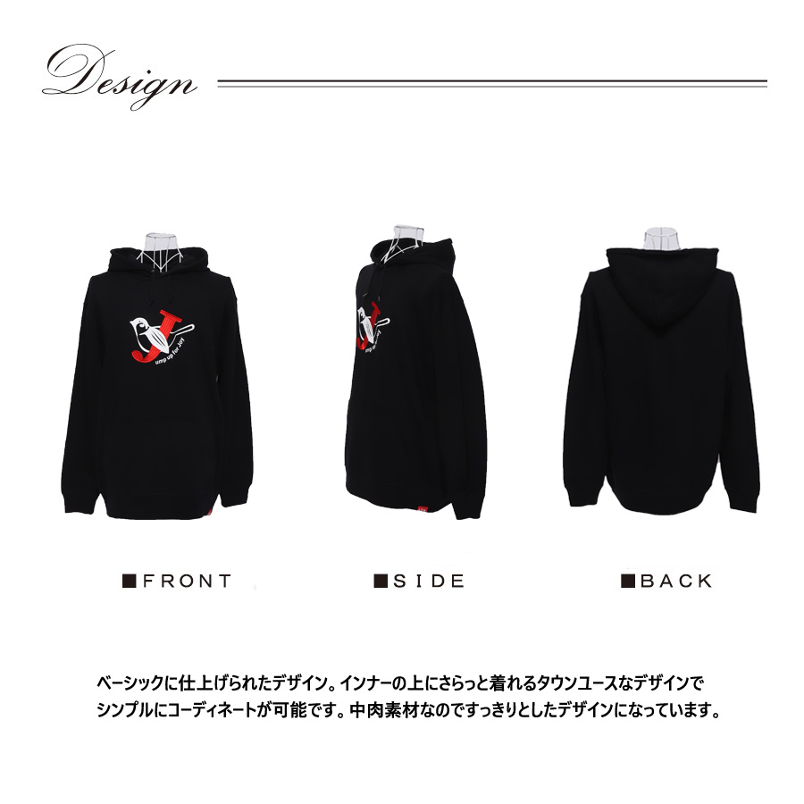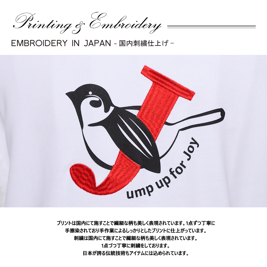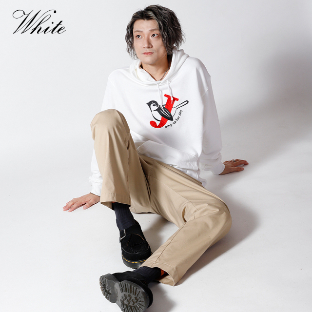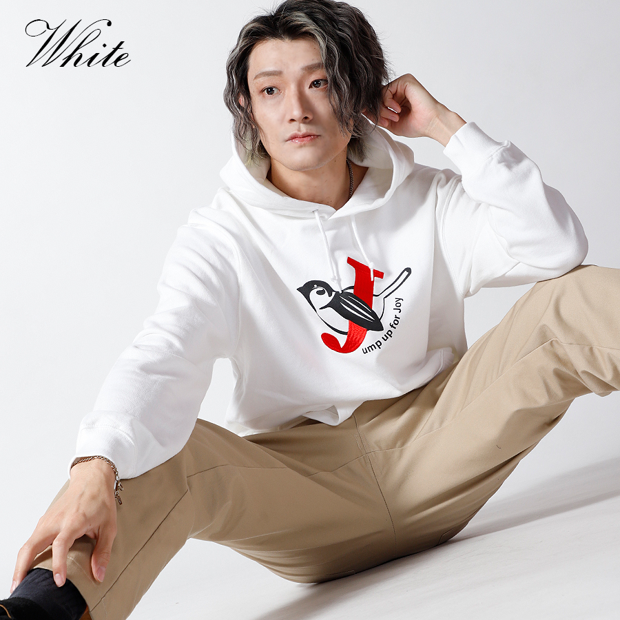 | 商品Data | 鈴木凌平さんとのコラボ企画! 今回のコラボはトレーナー、プルオーバーパーカー、スウェットパンツ、トートバッグをリリース。 【デザイン】 鈴木凌平さんの好きな四字熟語である「欣喜雀躍」をテーマにデザイン。 すずめが飛び跳ねて喜んでいるということから、 名前の「鈴木」にも響きが似ているため「すずめ」も取り入れています。 あだ名が「じゃる」で、「欣喜雀躍」を英語にすると頭文字も「J」ということで、 すずめが「J」を抱きかかえているのをイメージしたデザインとなっています。 ここでしか手に入らない受注期間限定アイテムです!是非お買い求めください!!!