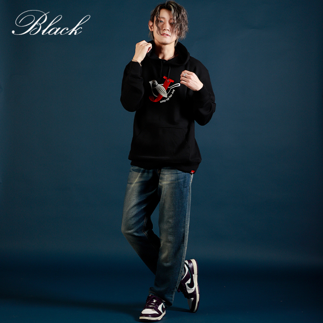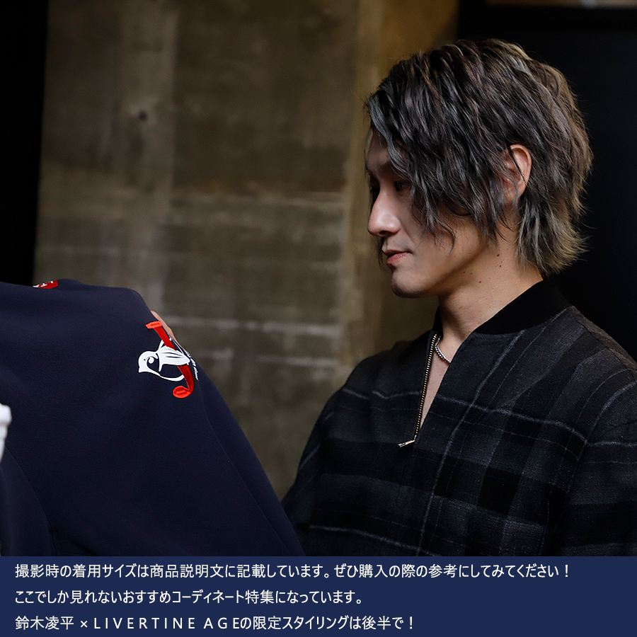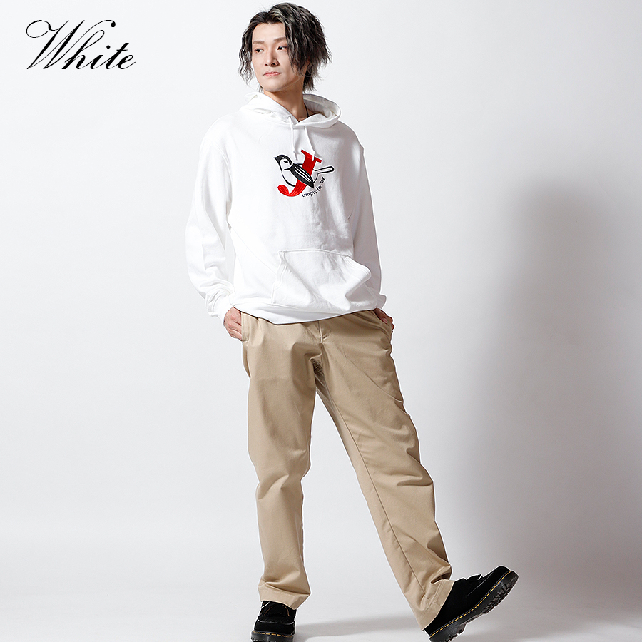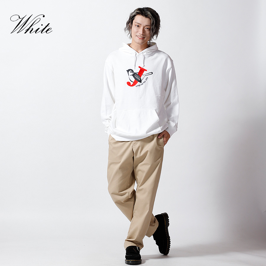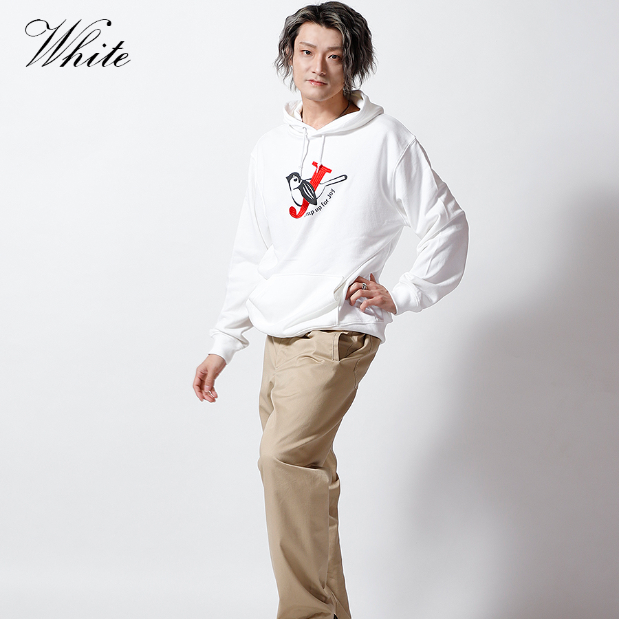 | 商品Data | 鈴木凌平さんとのコラボ企画! 今回のコラボはトレーナー、プルオーバーパーカー、スウェットパンツ、トートバッグをリリース。 【デザイン】 鈴木凌平さんの好きな四字熟語である「欣喜雀躍」をテーマにデザイン。 すずめが飛び跳ねて喜んでいるということから、 名前の「鈴木」にも響きが似ているため「すずめ」も取り入れています。 あだ名が「じゃる」で、「欣喜雀躍」を英語にすると頭文字も「J」ということで、 すずめが「J」を抱きかかえているのをイメージしたデザインとなっています。 ここでしか手に入らない受注期間限定アイテムです!是非お買い求めください!!!