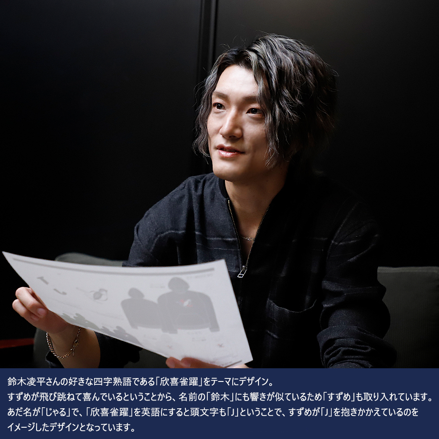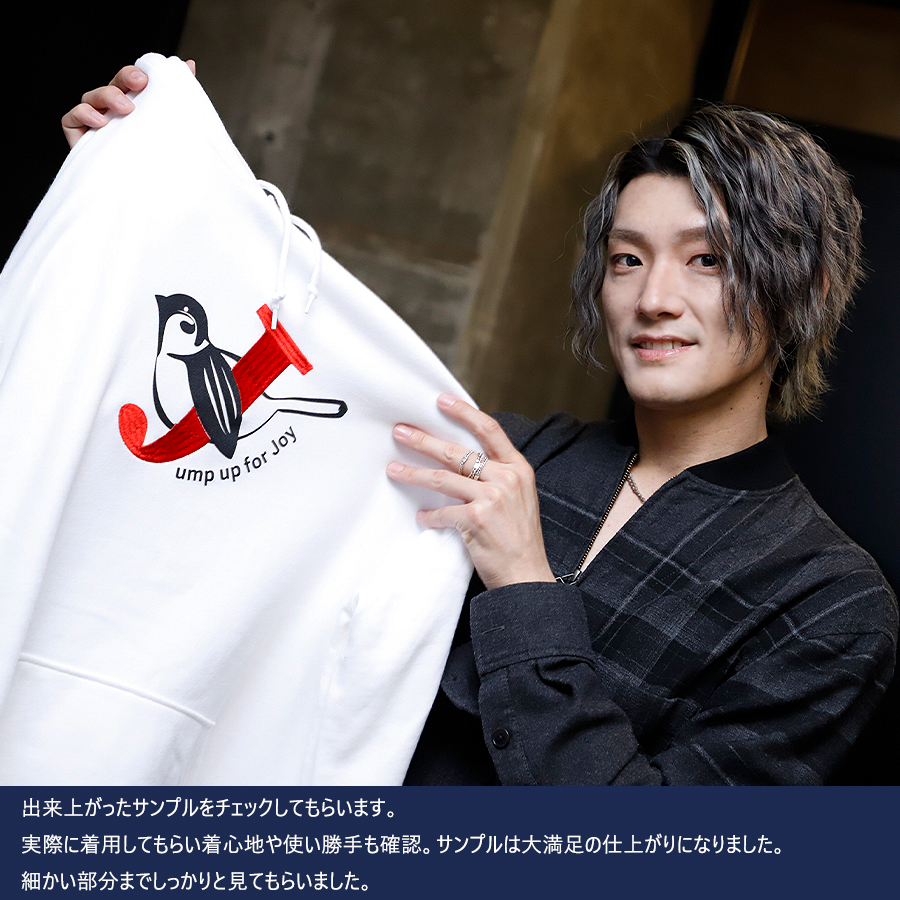 | 商品Data | 鈴木凌平さんとのコラボ企画! 今回のコラボはトレーナー、プルオーバーパーカー、スウェットパンツ、トートバッグをリリース。 【デザイン】 鈴木凌平さんの好きな四字熟語である「欣喜雀躍」をテーマにデザイン。 すずめが飛び跳ねて喜んでいるということから、 名前の「鈴木」にも響きが似ているため「すずめ」も取り入れています。 あだ名が「じゃる」で、「欣喜雀躍」を英語にすると頭文字も「J」ということで、 すずめが「J」を抱きかかえているのをイメージしたデザインとなっています。 ここでしか手に入らない受注期間限定アイテムです!是非お買い求めください!!! ※商品の発送予定時期は 【4月上旬頃~4月中旬頃順次発送予定】 となります。 ※受注生産の為、発送予定時期が前後する場合がございます。 ※高額注文の場合には ご注文後にお電話にてご連絡をさせていただく場合がございます。 お電話にてご連絡が取れない場合にはメールにてご連絡させていただき、 ご連絡日より3日以内にご返信をいただけない場合には不正注文の可能性があると判断し トラブル防止のためご注文をキャンセルとさせていただきます。 ※商品によっては撮影時にサンプルを使用しているため若干仕様が異なる場合がございます。 また、サイズ・カラーによっては仕様が異なる場合もございます。 ※手作業で縫製をしているため縫製の仕様により、 個体差が生じてしまいますので、1~2cm程度の誤差は予めご了承くださいませ。 ※洗濯機を使用した場合、お届け時のサイズより多少縮む場合がございます。 洗濯機を使用する場合は裏返してネットに入れることを推奨しております。 また、タンブラー乾燥機を使用しますとプリントが剥がれる恐れがありますので 避けていただきますようお願いいたします。 また、洗濯時の液温は40度以下とし、 塩素系および酸素系漂白剤の使用は避けていただきますようお願いいたします。 アイロンにつきましてもプリント及び刺繍部分は避け、 生地部分にアイロンをかける場合にはあて布をして110度(低温)にてお願いいたします。 ※また、受注生産とさせていただいておりますが、 各色・サイズ毎に生産数に限りがございます為、 生産数の上限に達しました場合在庫切れとなる場合がございます。 |
