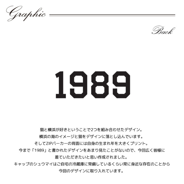 | 商品Data | 倉持明日香さんとのコラボ企画! 今回のコラボは半袖Tシャツ、ZIPパーカー、キャップをリリース。 【デザイン】 猫と横浜が好きということで2つを組み合わせたデザイン。 横浜の海のイメージと猫をデザインに落とし込んでいます。 そしてZIPパーカーの背面には自身の生まれ年を大きくプリント。 今まで「1989」と書かれたデザインをあまり見たことがないので、 今回広く皆様に着ていただきたいと思い作成されました。 キャップのシュウマイはご自宅の冷蔵庫に常備しているくらい 常に身近な存在のことから今回のデザインに取り入れています。 ここでしか手に入らない受注期間限定アイテムです!是非お買い求めください!!! ※商品の発送予定時期は【3月中旬頃~3月下旬頃順次発送予定】 となります。 ※受注生産の為、発送予定時期が前後する場合がございます。 ※高額注文の場合にはご注文後にお電話にてご連絡をさせていただく場合がございます。 お電話にてご連絡が取れない場合にはメールにてご連絡させていただき、 ご連絡日より3日以内にご返信をいただけない場合には不正注文の可能性があると判断し トラブル防止のためご注文をキャンセルとさせていただきます。 ※商品によっては撮影時にサンプルを使用しているため若干仕様が異なる場合がございます。 また、サイズ・カラーによっては仕様が異なる場合もございます。 ※手作業で縫製をしているため縫製の仕様により、 個体差が生じてしまいますので、1~2cm程度の誤差は予めご了承くださいませ。 ※洗濯機を使用した場合、お届け時のサイズより多少縮む場合がございます。 洗濯機を使用する場合は裏返してネットに入れることを推奨しております。 また、タンブラー乾燥機を使用しますとプリントが剥がれる恐れがありますので 避けていただきますようお願いいたします。 また、洗濯時の液温は40度以下とし、 塩素系および酸素系漂白剤の使用は避けていただきますようお願いいたします。 アイロンにつきましてもプリント及び刺繍部分は避け、 生地部分にアイロンをかける場合にはあて布をして110度(低温)にてお願いいたします。 ※また、受注生産とさせていただいておりますが、 各色・サイズ毎に生産数に限りがございます為、 生産数の上限に達しました場合在庫切れとなる場合がございます。 |