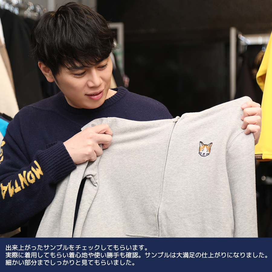 | 商品Data | 仲林圭さんとのコラボ企画! 今回のコラボは半袖Tシャツ、ZIPパーカー、トートバッグをリリース。 【デザイン】 愛猫の「おまめちゃん」と「もずくちゃん」をデザイン。 ワッペンをイメージして作成し、刺繍や模様にもこだわっています。 「おまめちゃん」は半袖Tシャツに、最近お迎えした「もずくちゃん」はZIPパーカーに、 トートバッグは2匹並べてデザインされています。 ここでしか手に入らない受注期間限定アイテムです!是非お買い求めください!!! ※商品の発送予定時期は 【4月上旬頃~4月中旬頃順次発送予定】となります。 ※受注生産の為、発送予定時期が前後する場合がございます。 ※高額注文の場合には ご注文後にお電話にてご連絡をさせていただく場合がございます。 お電話にてご連絡が取れない場合にはメールにてご連絡させていただき、 ご連絡日より3日以内にご返信をいただけない場合には不正注文の可能性があると判断し トラブル防止のためご注文をキャンセルとさせていただきます。 ※商品によっては撮影時にサンプルを使用しているため若干仕様が異なる場合がございます。 また、サイズ・カラーによっては仕様が異なる場合もございます。 ※手作業で縫製をしているため縫製の仕様により、 個体差が生じてしまいますので、1~2cm程度の誤差は予めご了承くださいませ。 ※洗濯機を使用した場合、お届け時のサイズより多少縮む場合がございます。 洗濯機を使用する場合は裏返してネットに入れることを推奨しております。 また、タンブラー乾燥機を使用しますとプリントが剥がれる恐れがありますので 避けていただきますようお願いいたします。 また、洗濯時の液温は40度以下とし、 塩素系および酸素系漂白剤の使用は避けていただきますようお願いいたします。 アイロンにつきましてもプリント及び刺繍部分は避け、 生地部分にアイロンをかける場合にはあて布をして110度(低温)にてお願いいたします。 ※また、受注生産とさせていただいておりますが、 各色・サイズ毎に生産数に限りがございます為、 生産数の上限に達しました場合在庫切れとなる場合がございます。 |