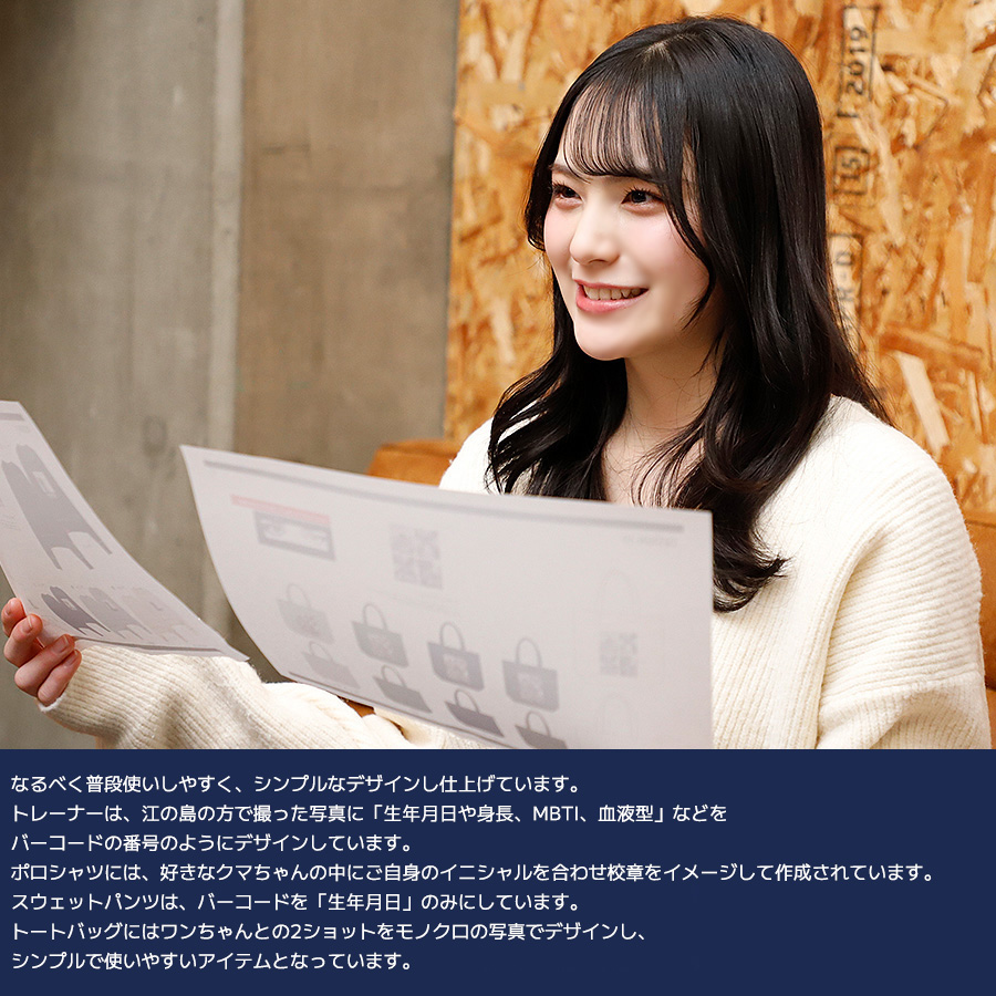 | 商品Data | 宮沢友さんとのコラボ企画! 今回のコラボはポロシャツ、トレーナー、スウェットパンツ、トートバッグをリリース。 【デザイン】 なるべく普段使いしやすく、シンプルなデザインし仕上げています。 トレーナーは、江の島の方で撮った写真に 「生年月日や身長、MBTI、血液型」などを バーコードの番号のようにデザインしています。 ポロシャツには、好きなクマちゃんの中にご自身のイニシャルを合わせ 校章をイメージして作成されています。 スウェットパンツは、バーコードを「生年月日」のみにしています。 トートバッグにはワンちゃんとの2ショットをモノクロの写真でデザインし、 シンプルで使いやすいアイテムとなっています。 ここでしか手に入らない受注期間限定アイテムです!是非お買い求めください!!! ※商品の発送予定時期は【4月中旬頃~4月下旬頃順次発送予定】 となります。 ※受注生産の為、発送予定時期が前後する場合がございます。 ※高額注文の場合には ご注文後にお電話にてご連絡をさせていただく場合がございます。 お電話にてご連絡が取れない場合にはメールにてご連絡させていただき、 ご連絡日より3日以内にご返信をいただけない場合には不正注文の可能性があると判断し トラブル防止のためご注文をキャンセルとさせていただきます。 ※商品によっては撮影時にサンプルを使用しているため若干仕様が異なる場合がございます。 また、サイズ・カラーによっては仕様が異なる場合もございます。 ※手作業で縫製をしているため縫製の仕様により、 個体差が生じてしまいますので、1~2cm程度の誤差は予めご了承くださいませ。 ※洗濯機を使用した場合、お届け時のサイズより多少縮む場合がございます。 洗濯機を使用する場合は裏返してネットに入れることを推奨しております。 また、タンブラー乾燥機を使用しますとプリントが剥がれる恐れがありますので 避けていただきますようお願いいたします。 また、洗濯時の液温は40度以下とし、 塩素系および酸素系漂白剤の使用は避けていただきますようお願いいたします。 アイロンにつきましてもプリント及び刺繍部分は避け、 生地部分にアイロンをかける場合にはあて布をして110度(低温)にてお願いいたします。 ※また、受注生産とさせていただいておりますが、 各色・サイズ毎に生産数に限りがございます為、 生産数の上限に達しました場合在庫切れとなる場合がございます。 |