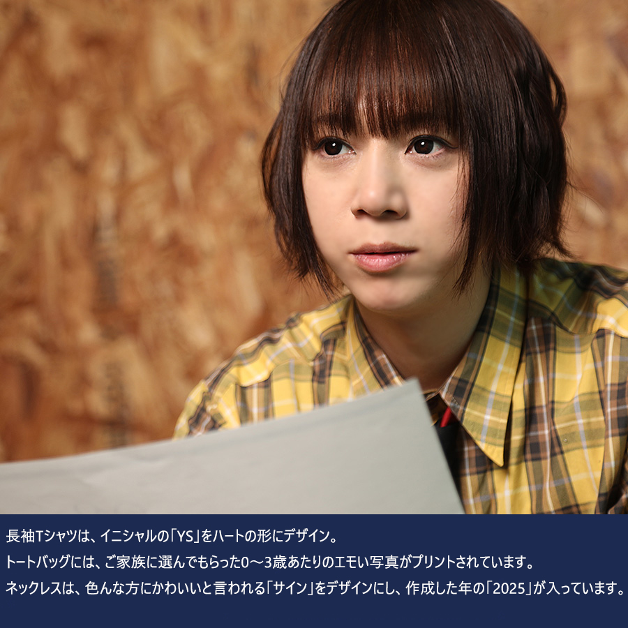 | 商品Data | 佐藤友咲さんとのコラボ企画第2弾! 今回のコラボは長袖Tシャツ、トートバッグ、ネックレスをリリース。 【デザイン】 長袖Tシャツは、イニシャルの「YS」をハートの形にデザイン。 トートバッグには、ご家族に選んでもらった0~3歳あたりのエモい写真がプリントされています。 ネックレスは、色んな方にかわいいと言われる「サイン」をデザインにし、作成した年の「2025」 が入っています。 ここでしか手に入らない受注期間限定アイテムです!是非お買い求めください!!! メッキ加工:国内加工 原型作成:国内 ※アレルギーの反応等がその時の体調や個人差により出る場合がございますので、 金属製アクセサリーを初めてご使用の場合は必ず「パッチテスト」をしてご使用ください。※ 【パッチテストとは】 金属アレルギーの場合、特殊なテープに24種類の金属試薬をつけてアレルギーの有無を調べる検査です。 皮膚科などで相談をすれば身近にできる検査です。 いくつか検査中に注意する点がありますのでテストを受ける病院で検査について相談してください。 ※現時点での商品の発送予定時期は【4月中旬頃~4月下旬頃順次発送】 を予定しております。 ※受注生産の為、発送予定時期が前後する場合がございます。 ※高額注文の場合には ご注文後にお電話にてご連絡をさせていただく場合がございます。 お電話にてご連絡が取れない場合にはメールにてご連絡させていただき、 ご連絡日より3日以内にご返信をいただけない場合には不正注文の可能性があると判断し トラブル防止のためご注文をキャンセルとさせていただきます。 また、受注生産とさせていただいておりますが、 各色・サイズ毎に生産数を設けさせて頂いております為、 生産数の上限に達しました場合在庫切れとなる場合がございます。 ※※商品画像は照明などの影響により実際の色と異なる場合がございます ※加工の特性上、仕上がり寸法及び色のニュアンスが多少異なることがあります。 |
