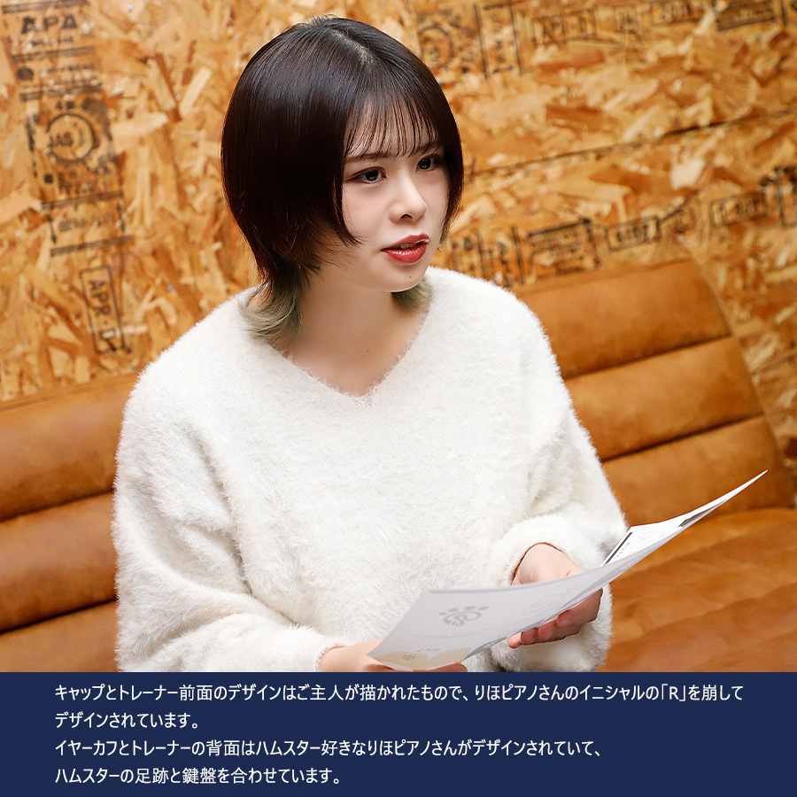 | 商品Data | りほピアノさんとのコラボ企画! 今回のコラボはトレーナー、キャップ、イヤーカフをリリース。 【デザイン】 キャップとトレーナー前面のデザインはご主人が描かれたもので、 りほピアノさんのイニシャルの「R」を崩してデザインされています。 イヤーカフとトレーナーの背面はハムスター好きなりほピアノさんがデザインされていて、 ハムスターの足跡と鍵盤を合わせています。 ここでしか手に入らない受注期間限定アイテムです!是非お買い求めください!!! ※商品の発送予定時期は【5月上旬頃~5月中旬頃順次発送予定】 となります。 ※受注生産の為、発送予定時期が前後する場合がございます。 ※高額注文の場合には ご注文後にお電話にてご連絡をさせていただく場合がございます。 お電話にてご連絡が取れない場合にはメールにてご連絡させていただき、 ご連絡日より3日以内にご返信をいただけない場合には不正注文の可能性があると判断し トラブル防止のためご注文をキャンセルとさせていただきます。 ※商品によっては撮影時にサンプルを使用しているため若干仕様が異なる場合がございます。 また、サイズ・カラーによっては仕様が異なる場合もございます。 ※手作業で縫製をしているため縫製の仕様により、 個体差が生じてしまいますので、1~2cm程度の誤差は予めご了承くださいませ。 ※洗濯機を使用した場合、お届け時のサイズより多少縮む場合がございます。 洗濯機を使用する場合は裏返してネットに入れることを推奨しております。 また、タンブラー乾燥機を使用しますとプリントが剥がれる恐れがありますので 避けていただきますようお願いいたします。 また、洗濯時の液温は40度以下とし、 塩素系および酸素系漂白剤の使用は避けていただきますようお願いいたします。 アイロンにつきましてもプリント及び刺繍部分は避け、 生地部分にアイロンをかける場合にはあて布をして110度(低温)にてお願いいたします。 ※また、受注生産とさせていただいておりますが、 各色・サイズ毎に生産数に限りがございます為、 生産数の上限に達しました場合在庫切れとなる場合がございます。 |