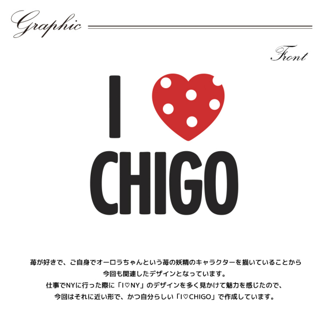 | 商品Data | 岩永徹也さんとのコラボ企画第3弾! 今回のコラボはトレーナー、スウェットデニムパンツ、ニットキャップ、イヤーカフをリリース。 【デザイン】 苺が好きで、ご自身でオーロラちゃんという苺の妖精のキャラクターを描いていることから 今回も関連したデザインとなっています。 仕事でNYに行った際に「I♡NY」のデザインを多く見かけて魅力を感じたので、 今回はそれに近い形で、かつ自分らしい「I♡CHIGO」で作成しています。 ここでしか手に入らない受注期間限定アイテムです!是非お買い求めください!!! ※商品の発送予定時期は【4月上旬頃~4月中旬頃順次発送予定】 となります。 ※受注生産の為、発送予定時期が前後する場合がございます。 【スウェットデニムパンツ使用上の注意点】 ---------------------------------------------------------------------- ※こちらの商品は染料を使用しておりますので色移りする可能性がございます。 下記の点にご注意下さい。 ※汗や雨などで湿った状態や摩擦により色移りいたしますので、 他の衣類と分けてデニムパンツ単独でお洗濯下さい。 ※漂白剤、乾燥機、お湯の使用はお避け下さい。 ※湿った状態で他の物と重ねても移染する可能性があり 汗や摩擦等で他の衣類や小物(靴や財布)、家具(ソファー)等に色移りする場合もございますので ご注意ください 長時間、水につけたまま、濡れたままにしておくと、 染料が染み出す事がございますのでご注意下さい。 ---------------------------------------------------------------------- ※高額注文の場合には ご注文後にお電話にてご連絡をさせていただく場合がございます。 お電話にてご連絡が取れない場合にはメールにてご連絡させていただき、 ご連絡日より3日以内にご返信をいただけない場合には不正注文の可能性があると判断し トラブル防止のためご注文をキャンセルとさせていただきます。 ※商品によっては撮影時にサンプルを使用しているため若干仕様が異なる場合がございます。 また、サイズ・カラーによっては仕様が異なる場合もございます。 ※手作業で縫製をしているため縫製の仕様により、 個体差が生じてしまいますので、1~2cm程度の誤差は予めご了承くださいませ。 ※洗濯機を使用した場合、お届け時のサイズより多少縮む場合がございます。 洗濯機を使用する場合は裏返してネットに入れることを推奨しております。 また、洗濯時の液温は40度以下とし、 塩素系および酸素系漂白剤の使用は避けていただきますようお願いいたします。 アイロンにつきましてもプリント及び刺繍部分は避け、 生地部分にアイロンをかける場合にはあて布をして110度(低温)にてお願いいたします。 ※また、受注生産とさせていただいておりますが、 各色・サイズ毎に生産数に限りがございます為、 生産数の上限に達しました場合在庫切れとなる場合がございます。 |