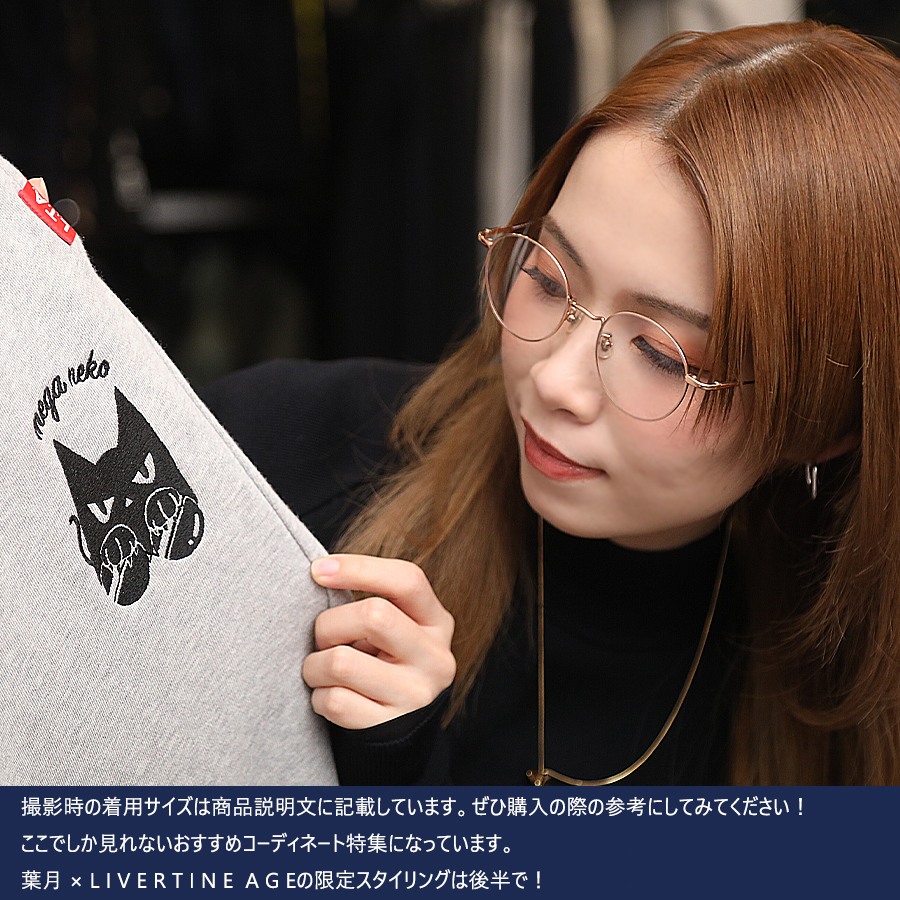 | 商品Data | 葉月さんとのコラボ企画! 今回のコラボはプルオーバーパーカー、スウェットパンツ、クッションをリリース。 【デザイン】 普段メガネをかけることが好きなこと、猫が好きなことを組み合わせた 葉月さん手描きデザインとなっています。 イラストの「mega neko」というのは 「メガ(大きい)猫」と「メガネっ子」と「メガネ+猫」という3つの意味になっています。 ここでしか手に入らない受注期間限定アイテムです!是非お買い求めください!!! ※商品の発送予定時期は【4月下旬頃~5月上旬頃順次発送予定】 となります。 ※受注生産の為、発送予定時期が前後する場合がございます。 ※高額注文の場合には ご注文後にお電話にてご連絡をさせていただく場合がございます。 お電話にてご連絡が取れない場合にはメールにてご連絡させていただき、 ご連絡日より3日以内にご返信をいただけない場合には不正注文の可能性があると判断し トラブル防止のためご注文をキャンセルとさせていただきます。 ※商品によっては撮影時にサンプルを使用しているため若干仕様が異なる場合がございます。 また、サイズ・カラーによっては仕様が異なる場合もございます。 ※手作業で縫製をしているため縫製の仕様により、 個体差が生じてしまいますので、1~2cm程度の誤差は予めご了承くださいませ。 ※洗濯機を使用した場合、お届け時のサイズより多少縮む場合がございます。 洗濯機を使用する場合は裏返してネットに入れることを推奨しております。 また、タンブラー乾燥機を使用しますとプリントが剥がれる恐れがありますので 避けていただきますようお願いいたします。 また、洗濯時の液温は40度以下とし、 塩素系および酸素系漂白剤の使用は避けていただきますようお願いいたします。 アイロンにつきましてもプリント及び刺繍部分は避け、 生地部分にアイロンをかける場合にはあて布をして110度(低温)にてお願いいたします。 ※また、受注生産とさせていただいておりますが、 各色・サイズ毎に生産数に限りがございます為、 生産数の上限に達しました場合在庫切れとなる場合がございます。 |