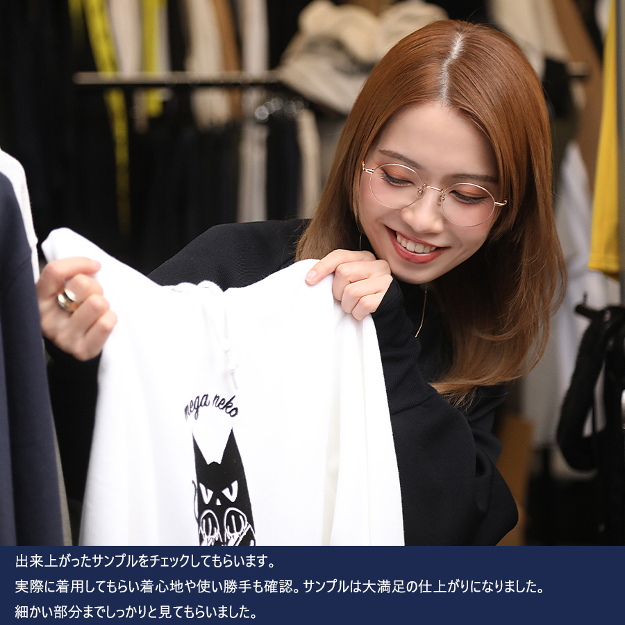 | 商品Data | 葉月さんとのコラボ企画! 今回のコラボはプルオーバーパーカー、スウェットパンツ、クッションをリリース。 【デザイン】 普段メガネをかけることが好きなこと、猫が好きなことを組み合わせた 葉月さん手描きデザインとなっています。 イラストの「mega neko」というのは 「メガ(大きい)猫」と「メガネっ子」と「メガネ+猫」という3つの意味になっています。 ここでしか手に入らない受注期間限定アイテムです!是非お買い求めください!!! ※商品の発送予定時期は 【4月下旬頃~5月上旬頃順次発送予定】 となります。 ※受注生産の為、発送予定時期が前後する場合がございます。 ※高額注文の場合には ご注文後にお電話にてご連絡をさせていただく場合がございます。 お電話にてご連絡が取れない場合にはメールにてご連絡させていただき、 ご連絡日より3日以内にご返信をいただけない場合には不正注文の可能性があると判断し トラブル防止のためご注文をキャンセルとさせていただきます。 ※商品によっては撮影時にサンプルを使用しているため若干仕様が異なる場合がございます。 また、サイズ・カラーによっては仕様が異なる場合もございます。 ※手作業で縫製をしているため縫製の仕様により、 個体差が生じてしまいますので、1~2cm程度の誤差は予めご了承くださいませ。 ※洗濯機を使用した場合、お届け時のサイズより多少縮む場合がございます。 洗濯機を使用する場合は裏返してネットに入れることを推奨しております。 また、タンブラー乾燥機を使用しますとプリントが剥がれる恐れがありますので 避けていただきますようお願いいたします。 また、洗濯時の液温は40度以下とし、 塩素系および酸素系漂白剤の使用は避けていただきますようお願いいたします。 アイロンにつきましてもプリント及び刺繍部分は避け、 生地部分にアイロンをかける場合にはあて布をして110度(低温)にてお願いいたします。 ※また、受注生産とさせていただいておりますが、 各色・サイズ毎に生産数に限りがございます為、 生産数の上限に達しました場合在庫切れとなる場合がございます。 |