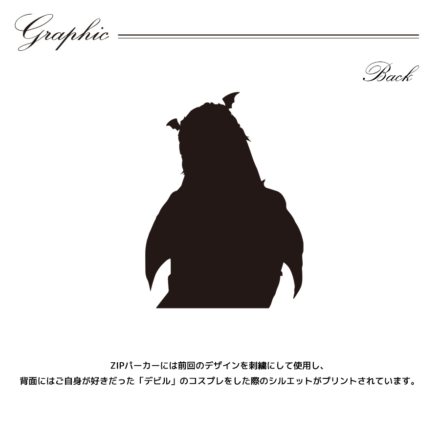 | 商品Data | 神谷泉水さんとのコラボ企画第2弾! 今回のコラボは長袖Tシャツ、ZIPパーカー、トートバッグをリリース。 【デザイン】 ZIPパーカーには前回のデザインを刺繍にして使用し、 背面にはご自身が好きだった「デビル」のコスプレをした際の シルエットがプリントされています。 ここでしか手に入らない受注期間限定アイテムです!是非お買い求めください!!! ※商品の発送予定時期は【5月下旬頃~6月上旬頃順次発送】 となります。 ※受注生産の為、発送予定時期が前後する場合がございます。 ※高額注文の場合にはご注文後にお電話にてご連絡をさせていただく場合がございます。 お電話にてご連絡が取れない場合にはメールにてご連絡させていただき、 ご連絡日より3日以内にご返信をいただけない場合には不正注文の可能性があると判断し トラブル防止のためご注文をキャンセルとさせていただきます。 ※商品によっては撮影時にサンプルを使用しているため若干仕様が異なる場合がございます。 また、サイズ・カラーによっては仕様が異なる場合もございます。 ※手作業で縫製をしているため縫製の仕様により、 個体差が生じてしまいますので、1~2cm程度の誤差は予めご了承くださいませ。 ※洗濯機を使用した場合、お届け時のサイズより多少縮む場合がございます。 洗濯機を使用する場合は裏返してネットに入れることを推奨しております。 また、タンブラー乾燥機を使用しますとプリントが剥がれる恐れがありますので 避けていただきますようお願いいたします。 また、洗濯時の液温は40度以下とし、 塩素系および酸素系漂白剤の使用は避けていただきますようお願いいたします。 アイロンにつきましてもプリント及び刺繍部分は避け、 生地部分にアイロンをかける場合にはあて布をして110度(低温)にてお願いいたします。 ※また、受注生産とさせていただいておりますが、 各色・サイズ毎に生産数に限りがございます為、 生産数の上限に達しました場合在庫切れとなる場合がございます。 |