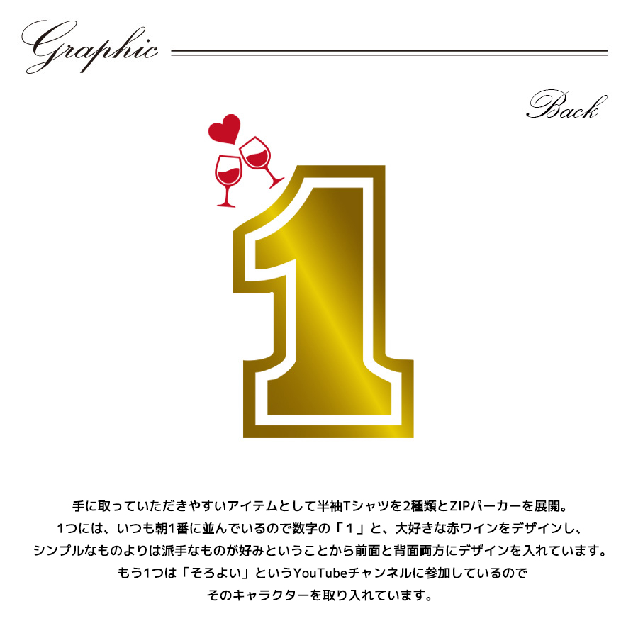 | 商品Data | Emimiさんとのコラボ企画! 今回のコラボは半袖TシャツTYPE-A、半袖TシャツTYPE-B、ZIPパーカーをリリース。 【デザイン】 手に取っていただきやすいアイテムとして半袖Tシャツを2種類とZIPパーカーを展開。 1つには、いつも朝1番に並んでいるので数字の「1」と、大好きな赤ワインをデザインし、 シンプルなものよりは派手なものが好みということから前面と背面両方にデザインを入れています。 もう1つは「そろよい」というYouTubeチャンネルに参加しているのでそのキャラクターを取り入れています。 ここでしか手に入らない受注期間限定アイテムです!是非お買い求めください!!! ※商品の発送予定時期は 【5月下旬頃~6月上旬頃順次発送 】となります。 ※受注生産の為、発送予定時期が前後する場合がございます。 ※高額注文の場合にはご注文後にお電話にてご連絡をさせていただく場合がございます。 お電話にてご連絡が取れない場合にはメールにてご連絡させていただき、 ご連絡日より3日以内にご返信をいただけない場合には不正注文の可能性があると判断し トラブル防止のためご注文をキャンセルとさせていただきます。 ※商品によっては撮影時にサンプルを使用しているため若干仕様が異なる場合がございます。 また、サイズ・カラーによっては仕様が異なる場合もございます。 ※手作業で縫製をしているため縫製の仕様により、 個体差が生じてしまいますので、1~2cm程度の誤差は予めご了承くださいませ。 ※洗濯機を使用した場合、お届け時のサイズより多少縮む場合がございます。 洗濯機を使用する場合は裏返してネットに入れることを推奨しております。 また、タンブラー乾燥機を使用しますとプリントが剥がれる恐れがありますので 避けていただきますようお願いいたします。 また、洗濯時の液温は40度以下とし、 塩素系および酸素系漂白剤の使用は避けていただきますようお願いいたします。 アイロンにつきましてもプリント及び刺繍部分は避け、 生地部分にアイロンをかける場合にはあて布をして110度(低温)にてお願いいたします。 ※また、受注生産とさせていただいておりますが、 各色・サイズ毎に生産数に限りがございます為、 生産数の上限に達しました場合在庫切れとなる場合がございます。 |